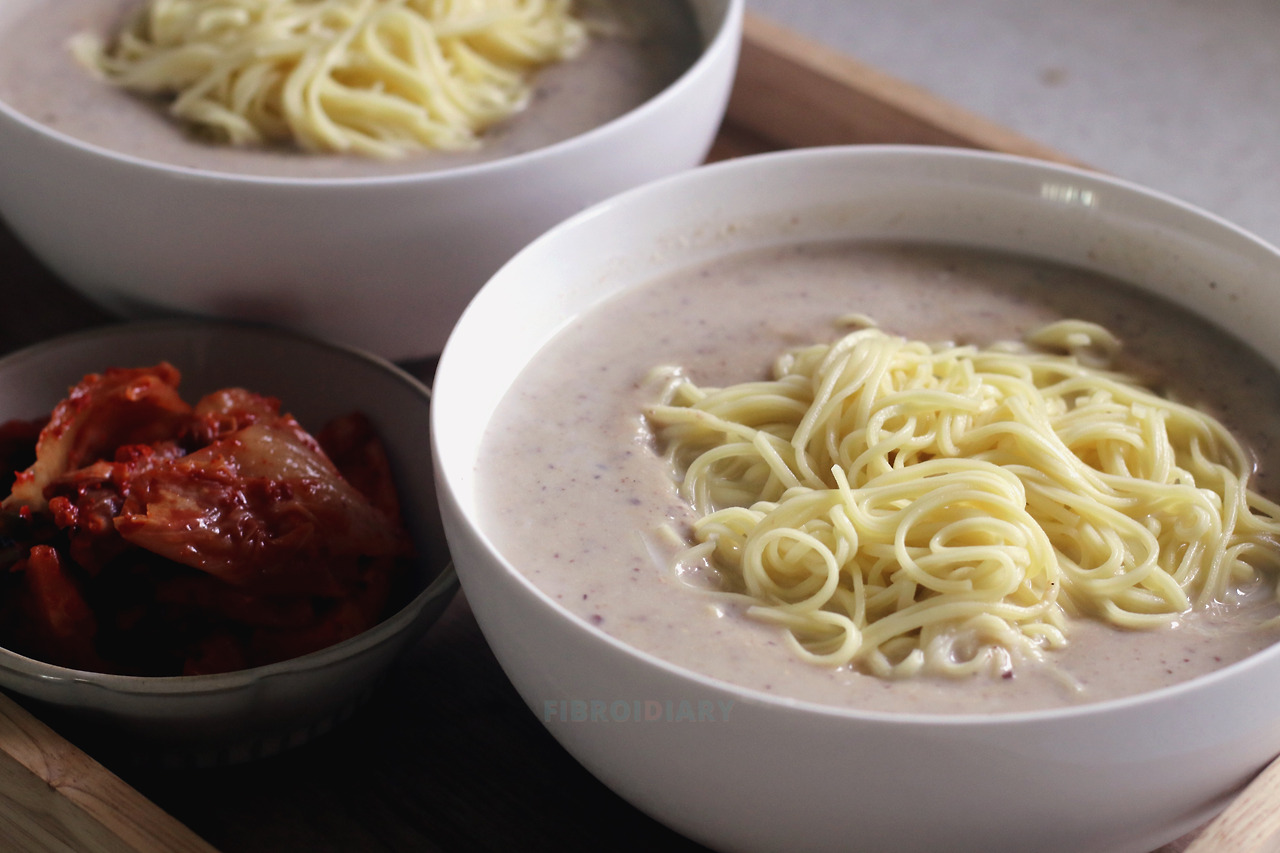 불리고 삶은 후, 콩국물을 만드는 과정까지는 8시간이 족히 걸렸다. 국물처럼 뚝뚝 떨어지기보단 요플레처럼 걸쭉하게 늘어지는 감촉이라 떠먹는다는 표현이 더 잘 어울린다. 콩국수 가게에서 파는 것만큼 달고 짜진 않지 않고 콩의 단맛과 감칠맛이 담백하게 느껴져 기분이 좋다. 오늘도 내 근종 세포 하나쯤은 건강해졌겠지!
