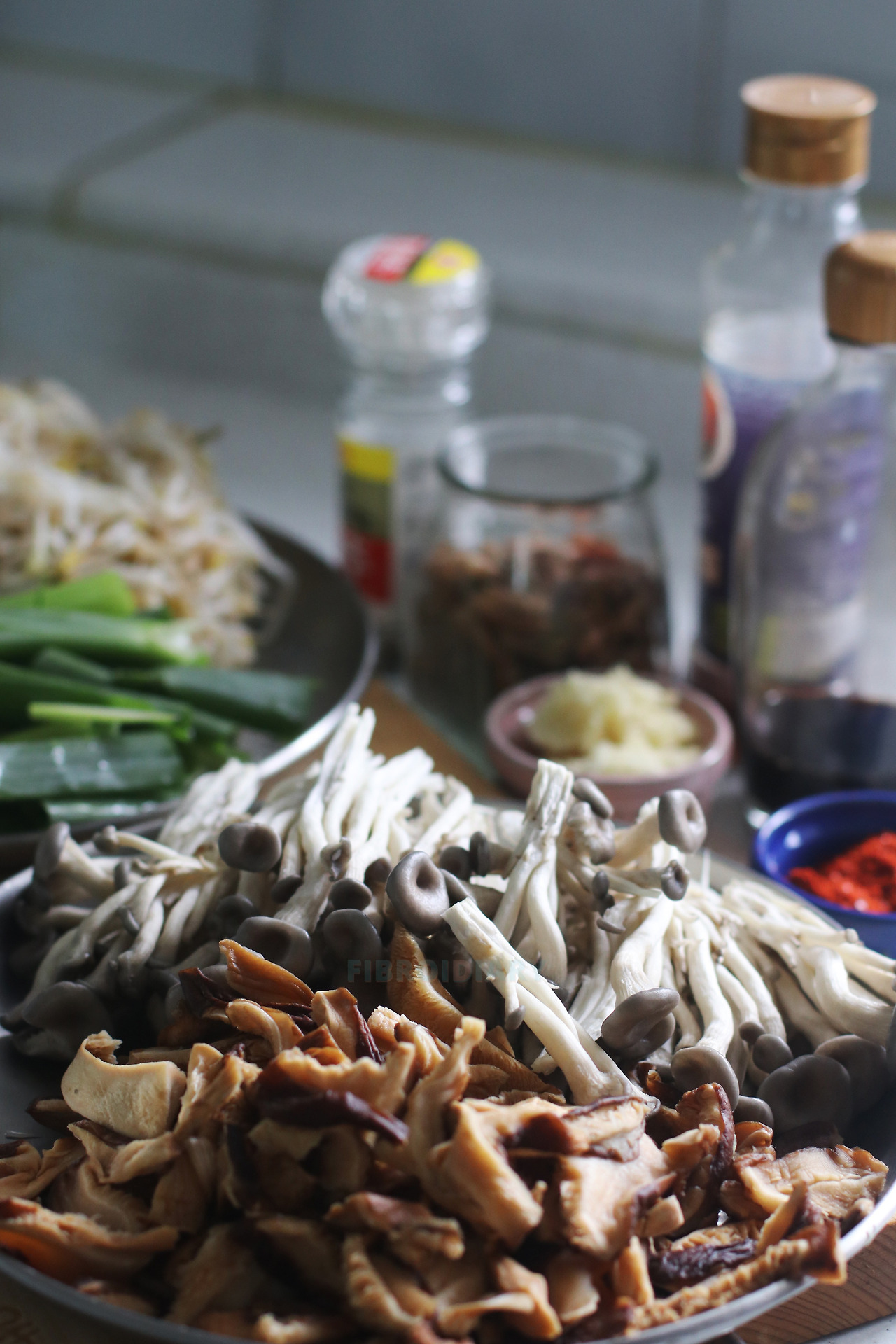 건데기 : 표고 버섯, 느타리 버섯, 숙주나물, 무, 파 두 대
