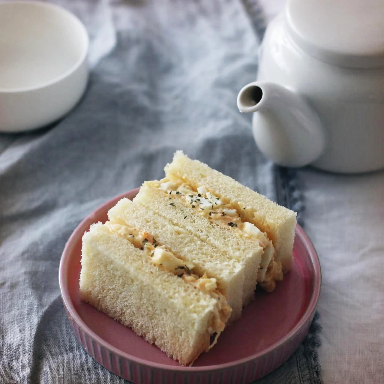부드러운 식빵에 포갠 간단한 샌드위치.