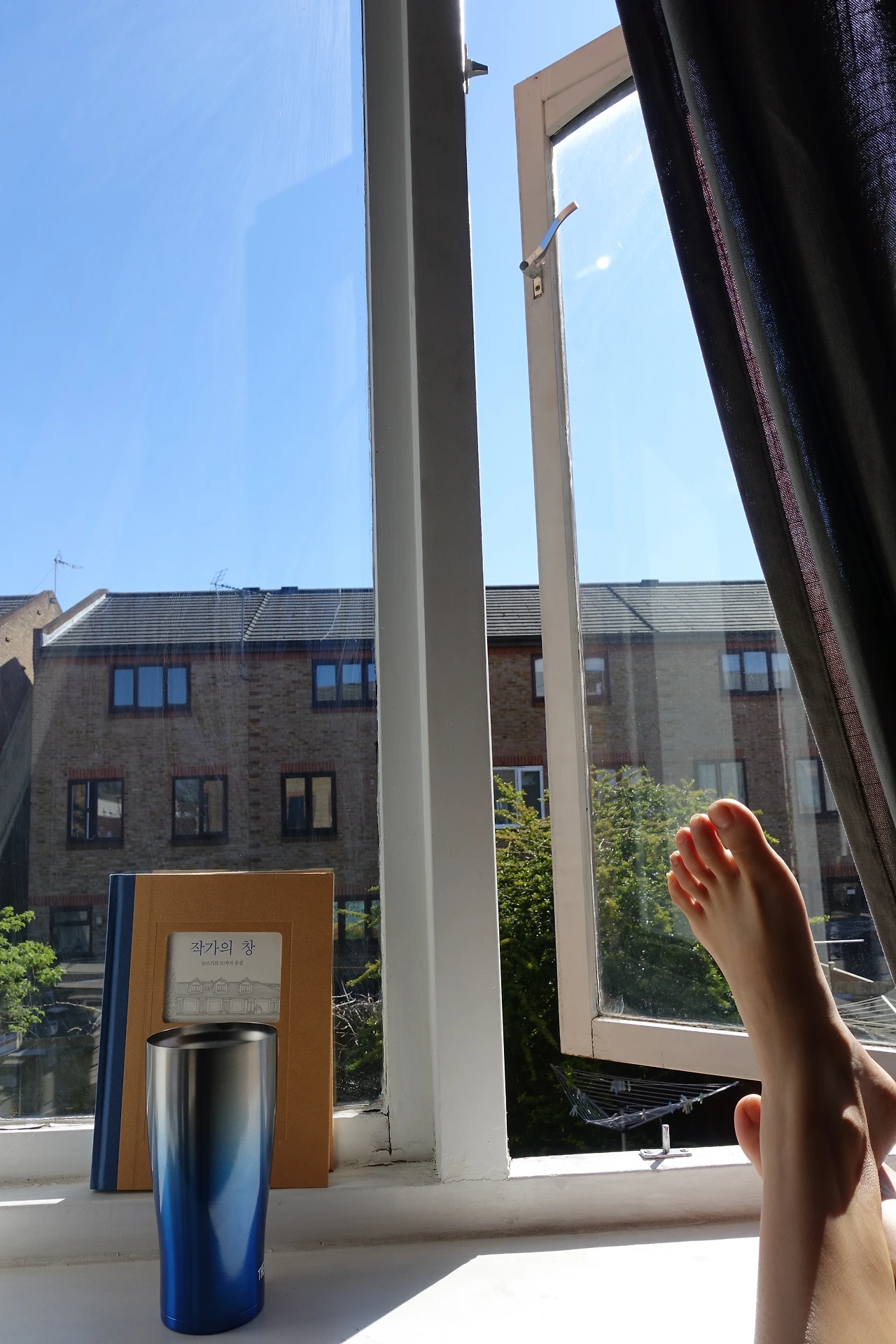 아무튼 초반엔 시간이고 나발이고 침대에 널브러져 있기만 했다. 그러나 날마다 그렇게 지낼 순 없는 노릇이고 일주일 내내 누워만 있자니 사실 허리도 끊어질 것 같아서, 얼마 후에는 멍을 때리더라도 앉아서 하는 장족의 발전을 이루었다. 그러다 어느 날 햇볕이 유난히 좋길래 의자를 창가로 옮겼다. 그러자 내가 이전에는 이 창의 바깥을 한 번도 유심히 본 일이 없었다는 걸 깨달았다.