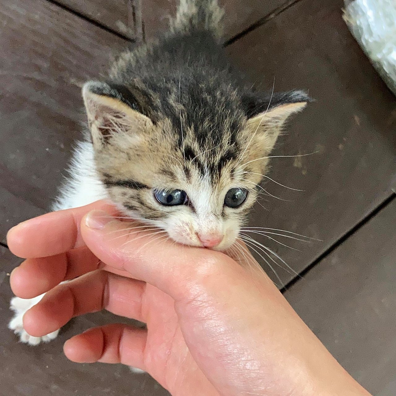 예정된 입양일까지 사흘이 남은 날. 시골집에 내려갔다. 아무래도 기분이 개운치 않아서. 마침 할 일도 없으니 하루라도 일찍 아기를 데려와 병원도 가고 좀 더 제대로 돌보고 깨끗하고 안정된 모습으로 보내야겠단 생각으로. 정자 아래 마련된 상자 안에 웅크려있던 꼬마가 나를 보자 깡충깡충 달려 나왔다. 사진 속 모습보다도 실물이 더 작아 놀랐다. 아기는 한 손바닥 안에 온몸이 폭 담길 만큼 작고, 부서질 것처럼 가냘픈 몸이지만 감사하게도 육안으로나마 아픈 데는 없어 보였다. 너무 발랄했다. 낯가림 하나 없이 손가락을 앙앙 깨물다가 발 위를 기어오르고 폴짝폴짝 뛰는 녀석이 신기하기도 하고 약간의 안도도 느껴져서 한숨 섞인 웃음이 나왔다.