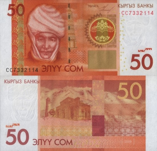 50솜의 앞면과 뒷면엔 탑이 보인다. 그 탑은 한국의 숭례문처럼 키르기스스탄의 상징적인 건축물이다. 부라나 미나렛(Burana Tower)이라는 탑은 9~10세기 실크로드에서 감시용도로 사용됐다. 유수프 하스 하집의 고향 발라사긴에 가면 부라나 탑을 볼 수 있다.