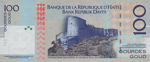 아이티 역사 유적지 중 대표적인 건물은 100구르드 뒷면에 보이는 앙리 성채(Henry Citadel)이다. 1820년 만들어진 이 성채는 아이티의 수도 포르토프랭스(Port Au Prince)가 아니라 역사적인 수도로 알려진 밀로트(Milot)에 있다. 오늘날에도 아이티에 관광 목적으로 가는 외국인들은 수도보다는 앙리 시대에 급속도로 부흥했던 밀로트를 간다.