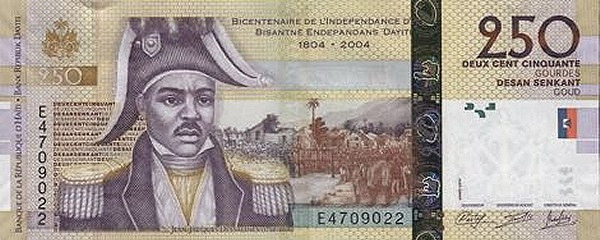 250구르드 앞면을 보면 장자크 드살린(Jean-Jacques Dessalines)의 초상화가 있다. 한때 루베르튀르의 오른팔로까지 승진한 드살린은 프랑스군이 루베르튀르를 제거하는 과정에서 별달리 항의하지 않았고 프랑스 통치를 인정했다. 노예 제도 폐지를 약속한 프랑스는 1803년 그 약속을 깨트렸고, 이에 아이티 사람들은 크게 반발했다. 그 때 장자크 드살린이 루베르튀르의 역할을 이어 받아 독립군 지도를 맡았다. 1804년 프랑스군은 완전히 패배한 채 아이티를 떠났고, 드살린은 아이티 독립국을 선포하며 초대 대통령이 되었다.