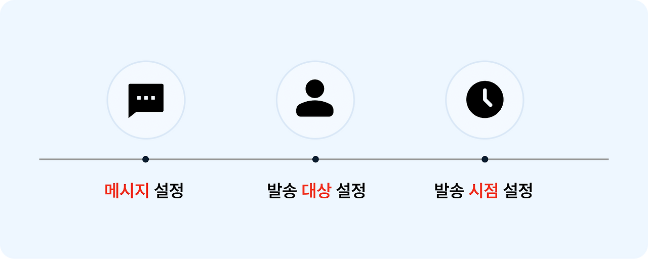 *프리셋은 미리 설정된 기본값이나 준비된 설정을 말해요. 알파푸시는 메시지 프리셋은 발송 문구, 이미지, 발송 시점 등이 설정되어 있어요.
