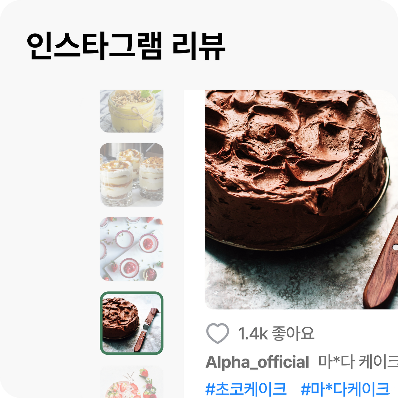 : 리뷰 작성 시, 인스타그램 리뷰 작성까지 유도하는 기능이에요. 고객이 작성하고 싶게끔, 또 작성하기 쉽게끔요!
