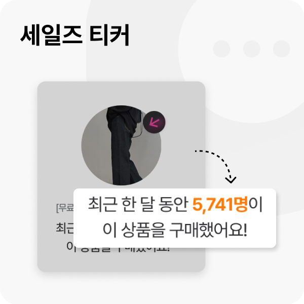 : 방문자 수, 장바구니에 담은 수 등을 고객에게 보여줘, 리뷰 없이도 소셜 프루프 효과를 내는 기능이에요.