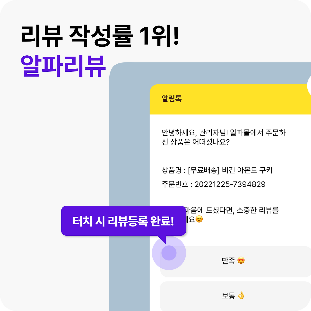 A. 쇼핑몰 Social Proof의 시작은 무조건 리뷰예요. 작성률 1위에 빛나는 알파리뷰의 여러 기능들과 함께 '신뢰 쌓기'를 시작해 보세요!
