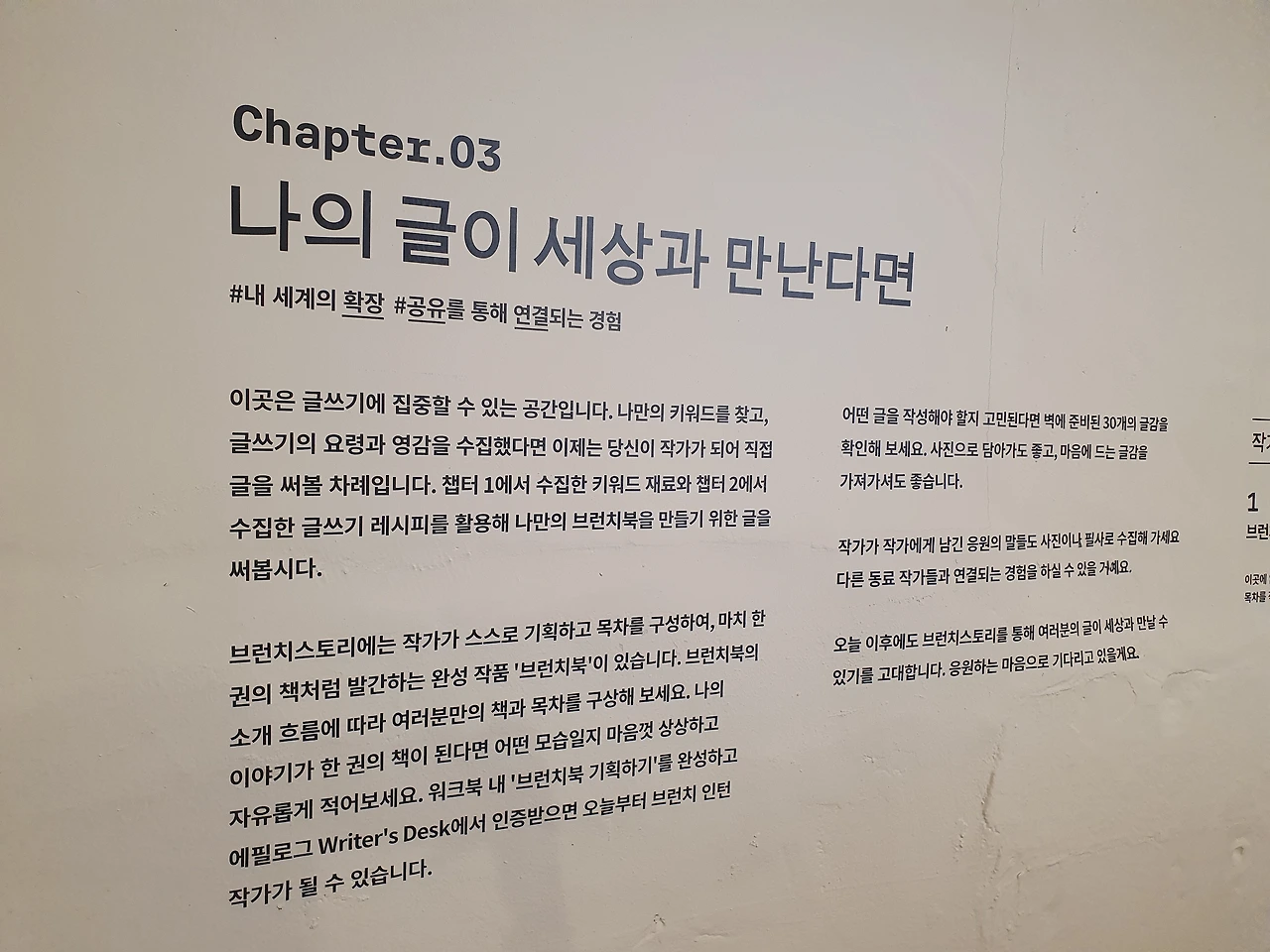 그 공간은 동화 속 한 장면처럼 아늑하고, 온통 글과 이야기가 가득했어요. 각기 다른 작가들이 걸어온 길을 엿보며, 그들의 이야기에 깊이 빠져들었습니다. 글을 쓴다는 것이 얼마나 멋진 일인지, 그리고 얼마나 많은 이들에게 영감을 줄 수 있는지 새삼 느꼈습니다.