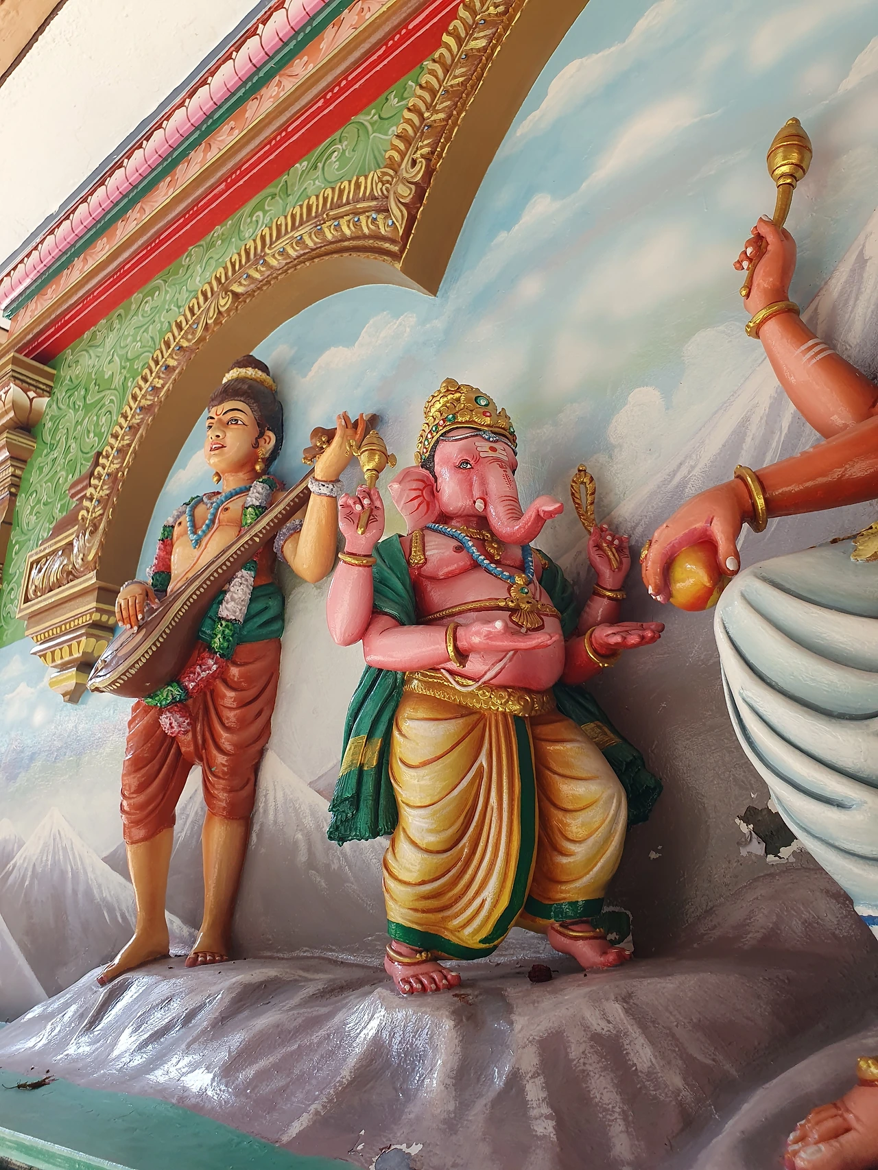 남인도의 풍경을 한껏 담은 듯한 이 사원은 처음부터 저를 압도하였습니다. 특히, 높이 솟은 고푸람이 다채로운 색상과 섬세한 조각들로 장식되어 있었는데, 그 웅장함에 한동안 눈을 뗄 수가 없었습니다.