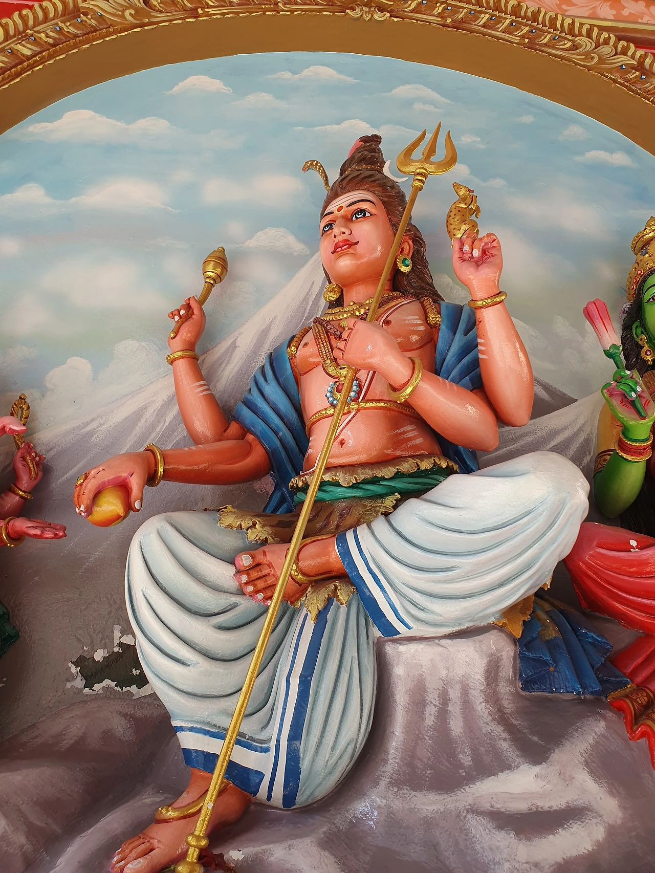 삼지창은 주로 시바 신과 연관되어 있으며, 세 개의 날이 있는 이 무기는 과거, 현재, 미래라는 시간의 세 단계를 상징합니다. 시바는 삼지창을 통해 우주적인 균형을 유지하고, 창조와 파괴를 동시에 관장하는 존재임을 나타냅니다. 삼지창은 또한 인간의 몸, 마음, 영혼을 상징하며, 이 모든 것을 초월하여 진리를 깨닫는 것을 의미합니다.