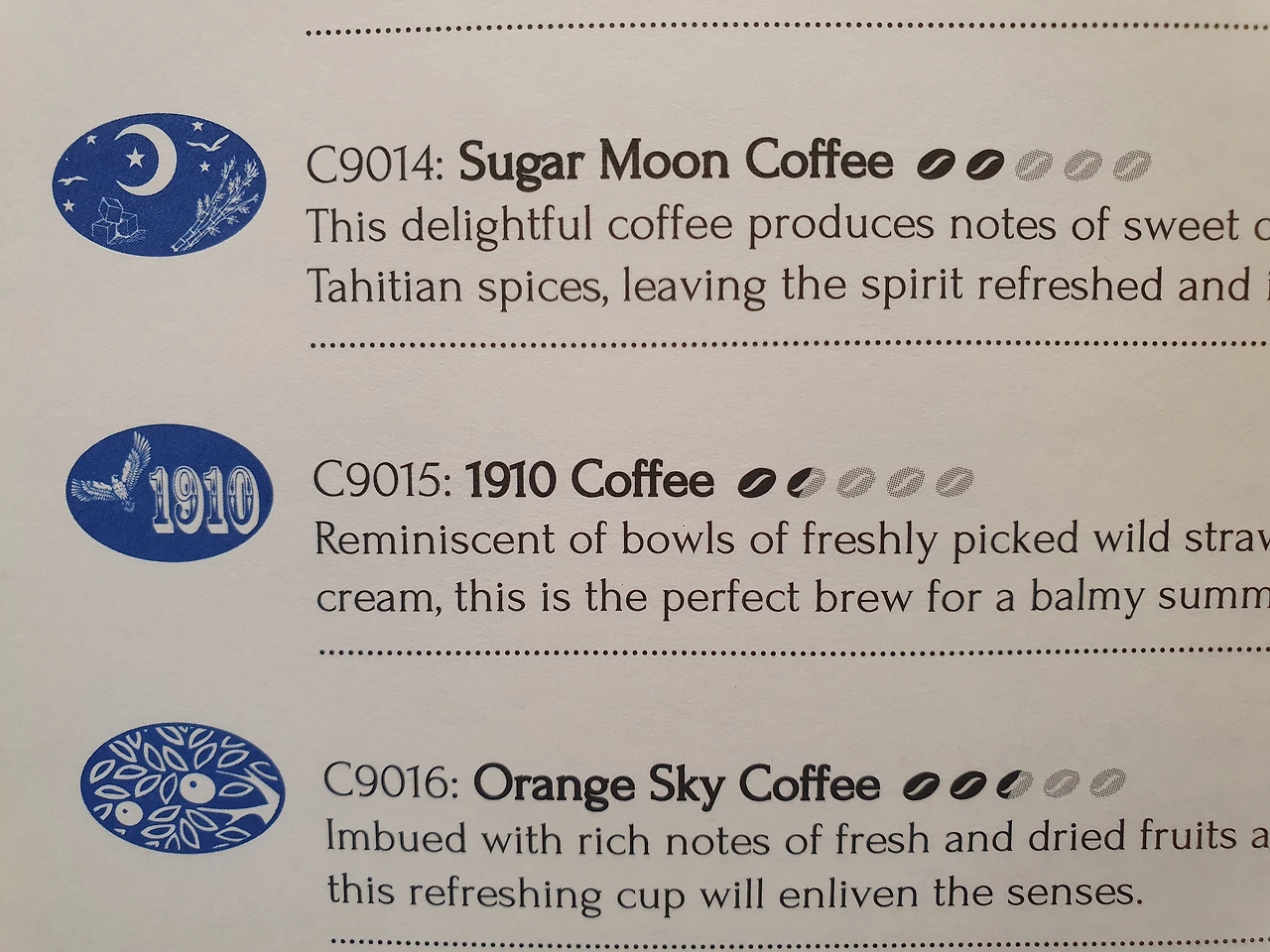 테이블에 앉자마자 친절한 직원분이 메뉴를 주셨습니다. 다양한 커피 옵션 중 저는 대표 메뉴인 '1910 커피'를 주문했습니다.