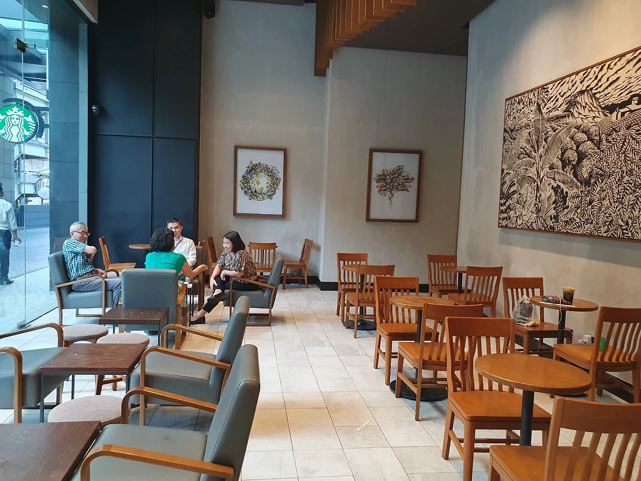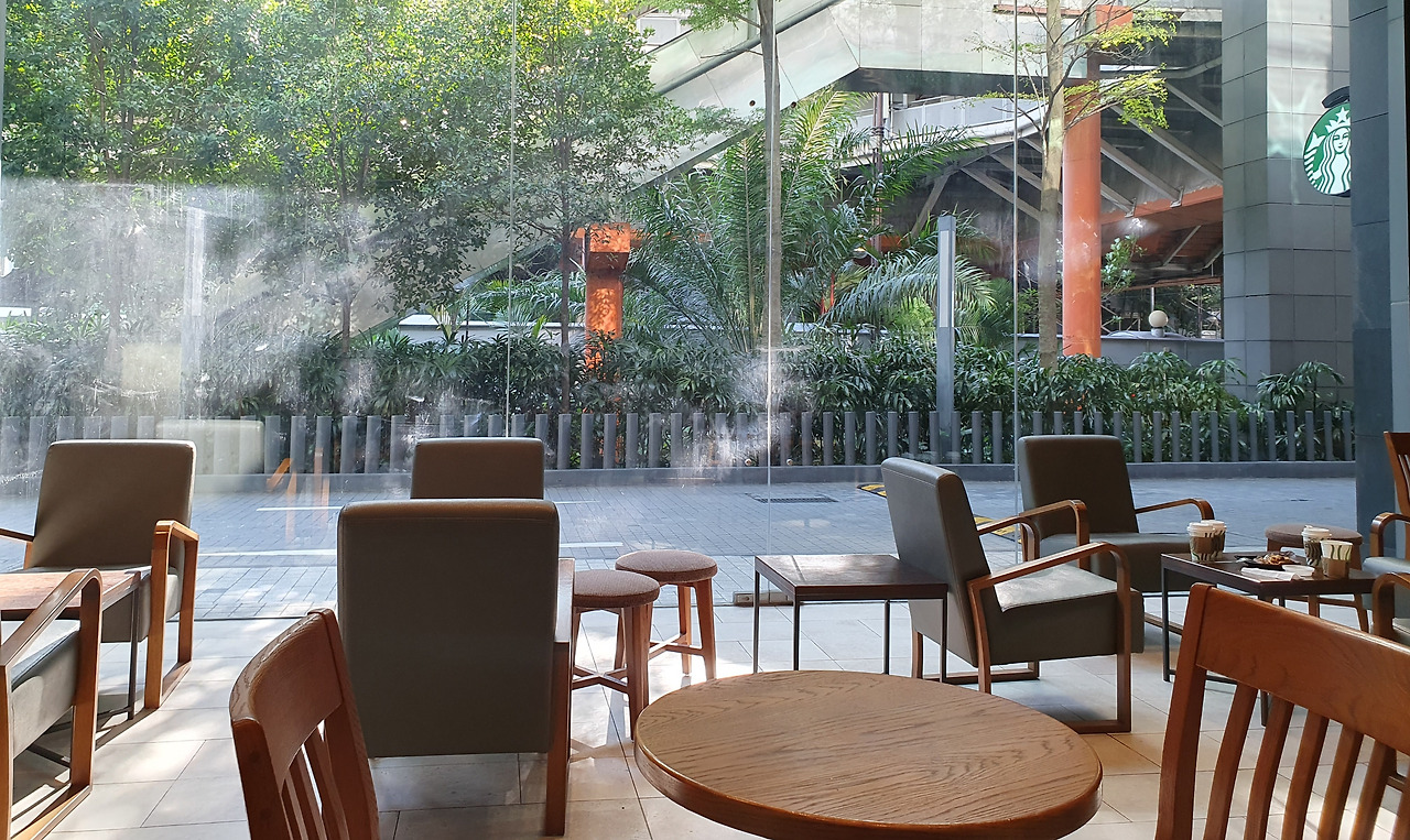 쿠알라룸푸르의 오후, 무더운 공기를 피하고자 스타벅스에 들어섰습니다. 문을 열고 들어가니 시원한 바람이 맞아주었고, 매장 안은 손님을 반기는 직원들로 가득 차 있었습니다.