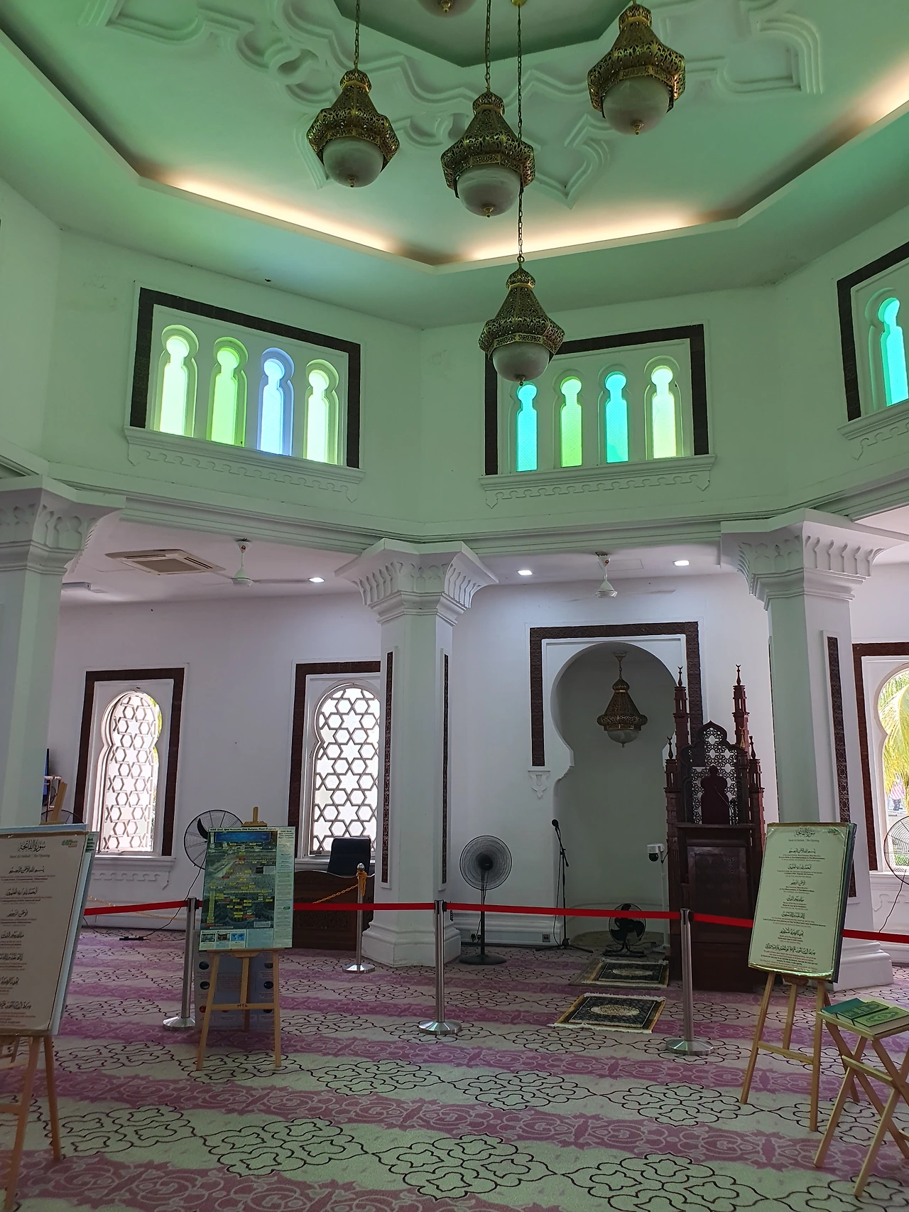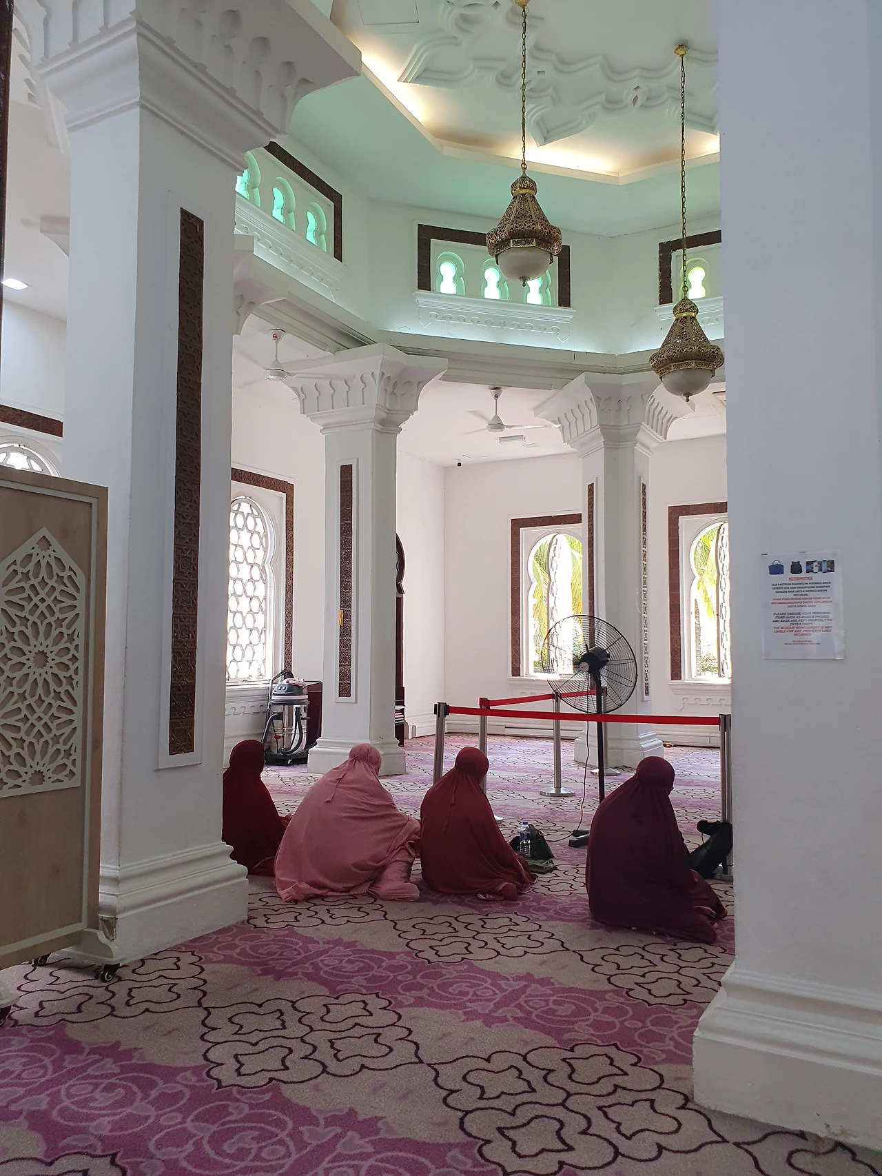 마지드 자멕의 아치형 입구를 지나면서, 바깥세상의 소음이 점점 멀어지는 것을 느낄 수 있었습니다. 모스크 안은 시간이 천천히 흐르는 듯한 고요함이 감돌았습니다.
