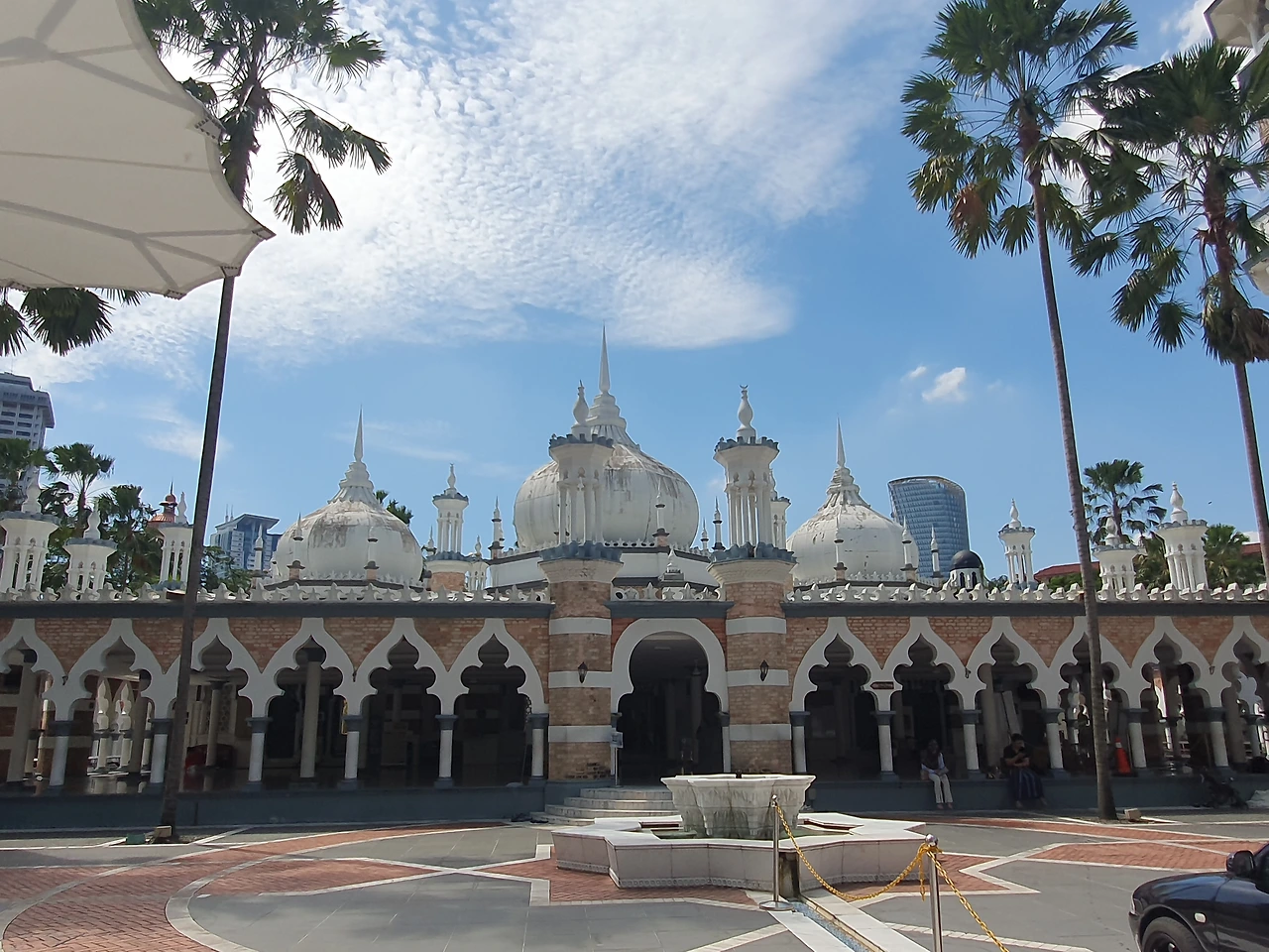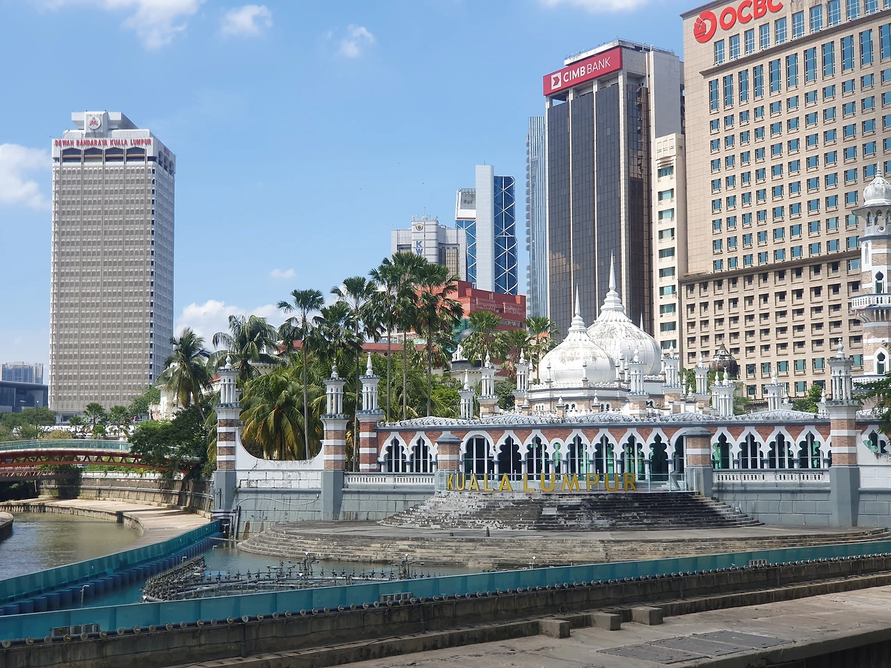 쿠알라룸푸르에서 가장 오래된 모스크 중 하나로, 1909년에 완공된 이슬람 사원입니다. 쿠알라룸푸르 시내 중심부, 클랑 강(Klang River)과 곰박 강(Gombak River)이 만나는 지점에 위치해 있으며, 이 두 강이 만나는 지역은 말레이시아의 수도 쿠알라룸푸르가 처음 시작된 역사적 장소이기도 합니다.