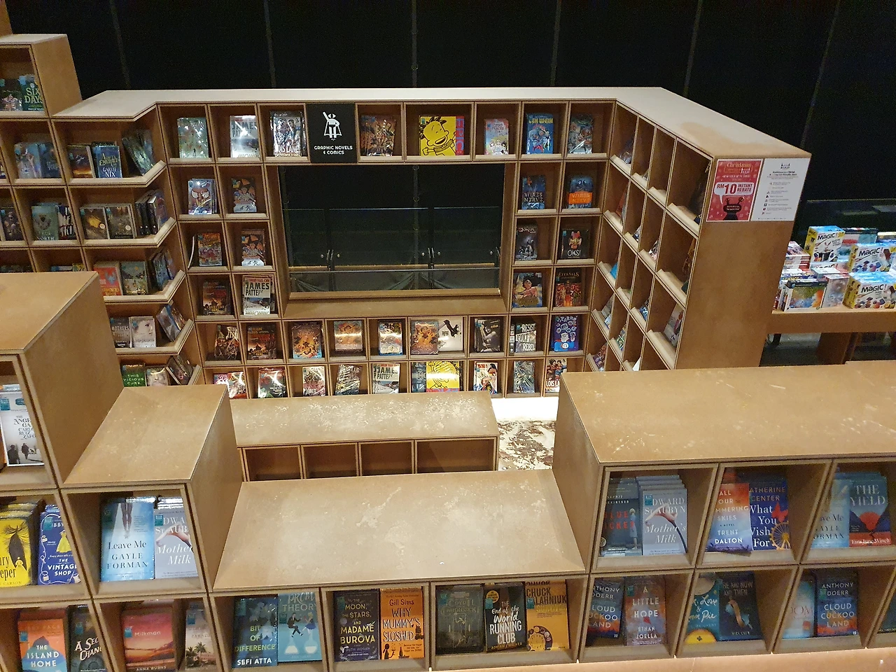 RexKL 2층에 위치한 BookXcess는 말레이시아 전역에서 널리 알려진 독립 서점 체인 중 하나로, 저렴한 가격에 다양한 종류의 책을 제공합니다.