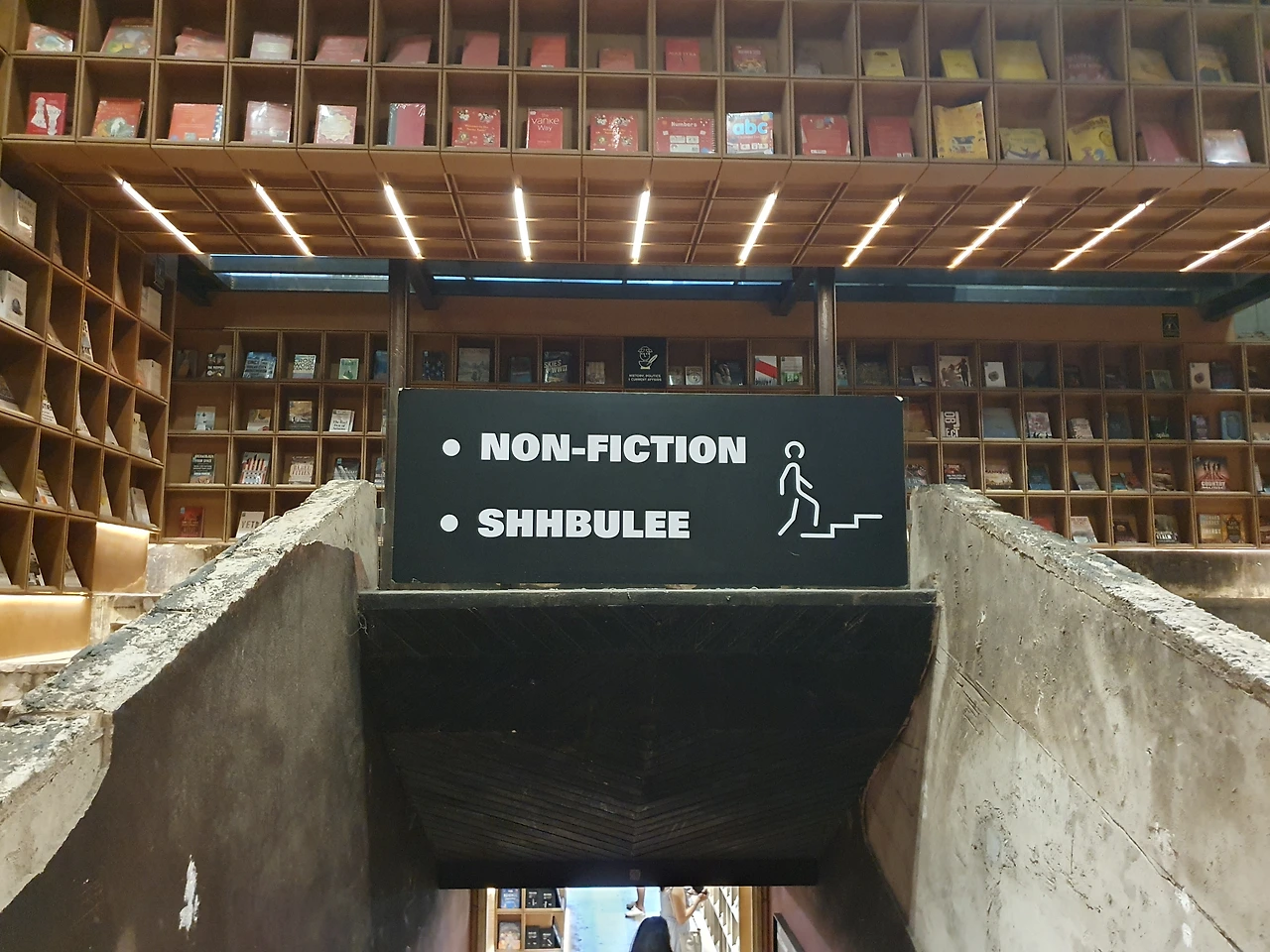 2층에 도착하자마자 눈앞에 펼쳐진 BookXcess는 책으로 가득 찬 미로 같았습니다. 길고 좁은 통로를 따라 빽빽이 꽂혀 있는 책들이 저를 환영했고, 서점의 독특한 인테리어가 책을 더욱 특별하게 만들어주었습니다.