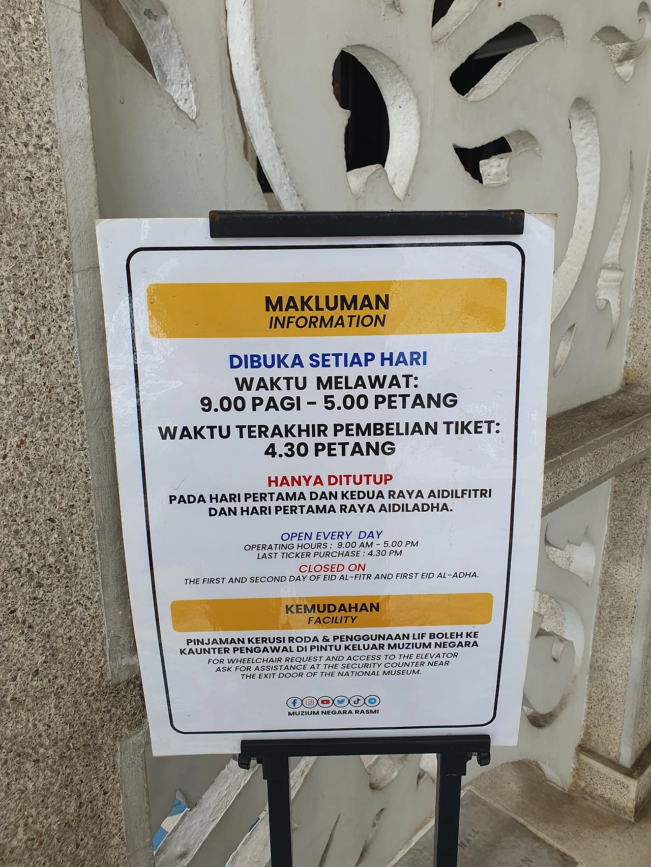 박물관 관람을 좋아해서 쿠알라룸푸르의 Muzium Negara 국립 박물관을 방문했습니다. 말레이시아의 역사와 정서를 고스란히 담고 있는 공간임을 느낄 수 있었습니다. (말레이시아어에서 Negara 는 "국가" 또는 "나라"를 의미합니다.)