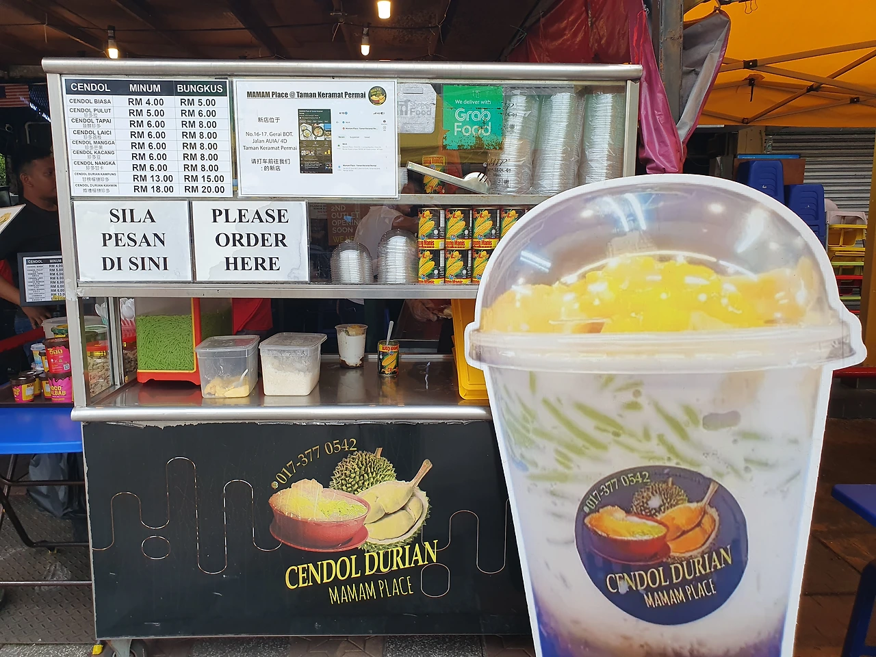 처음 두리안 cendol을 보니 호기심과 함께 살짝의 두려움이 뒤섞인 기분이 들었어요.(13링깃 원화 4.000원정도)두리안의 독특한 향은 워낙 강렬한 인상을 주기 때문에 과연 달콤한 첸돌과 어울릴까 하는 생각도 들었지요.