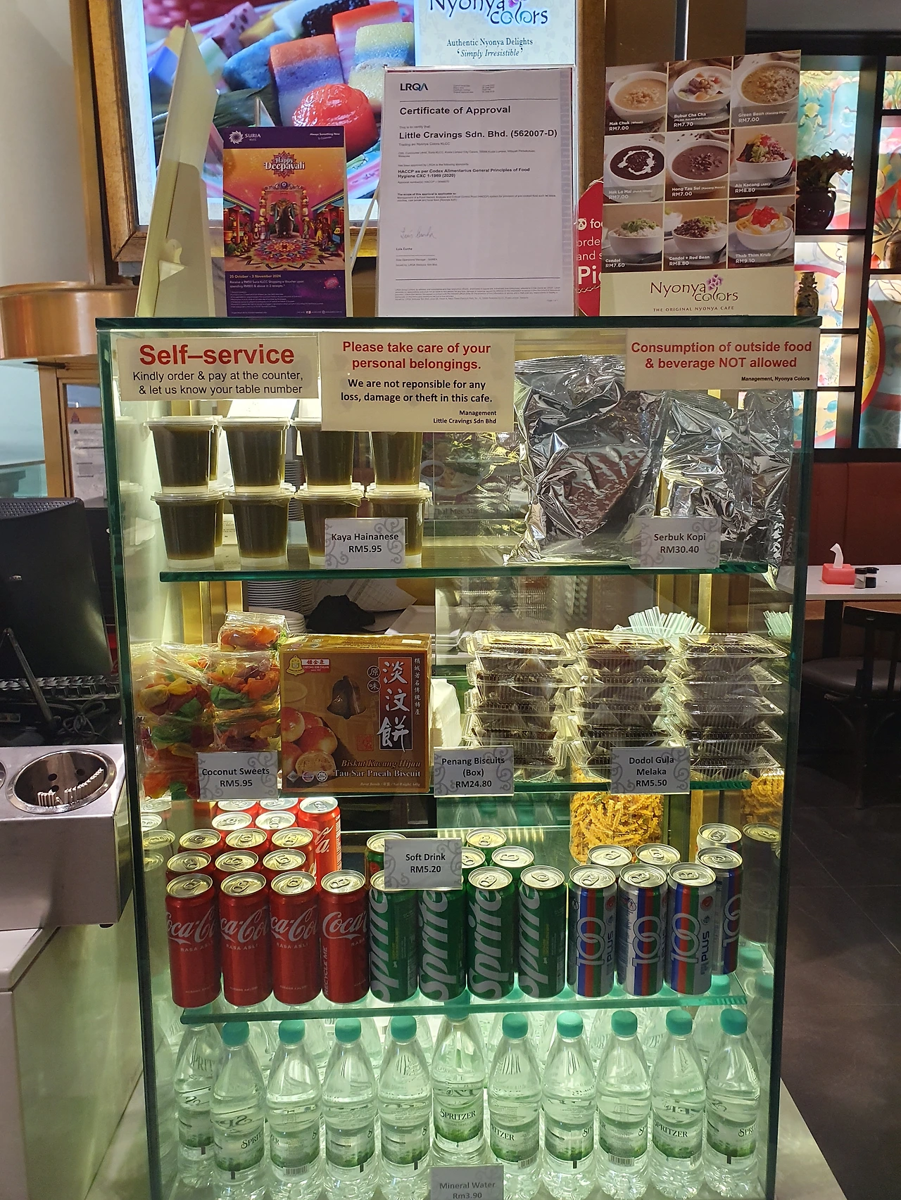 KLCC를 구경하다 Nyonya Colors라는 음식점에 방문했습니다. 말레이시아 전역에 걸쳐 여러 지점을 두고 있는 유명한 페라나칸(Nyonya) 디저트 및 간식 전문점인데요. 이곳은 전통적인 페라나칸 디저트를 현대적인 감각으로 재해석하여 누구나 쉽게 즐길 수 있는 디저트를 판매합니다.