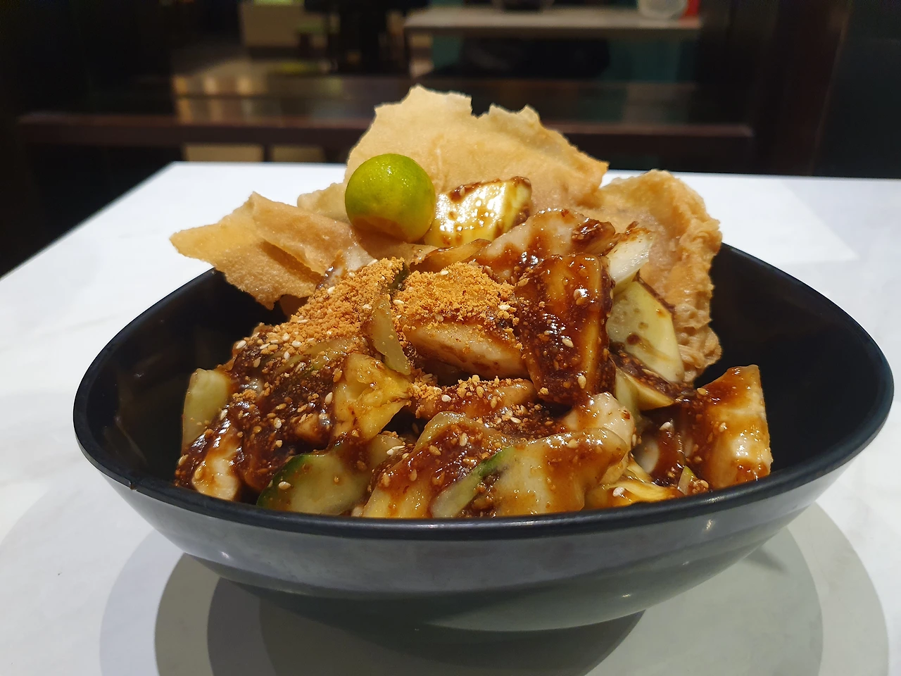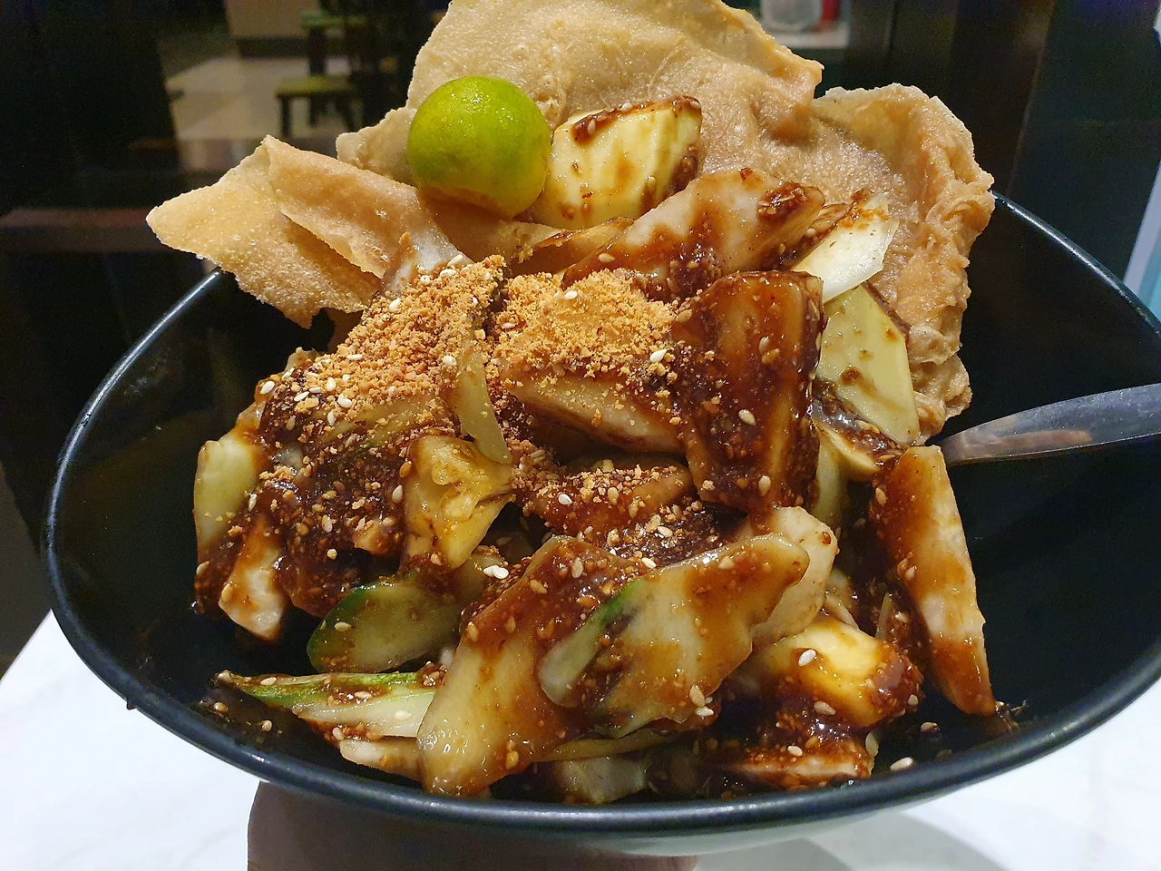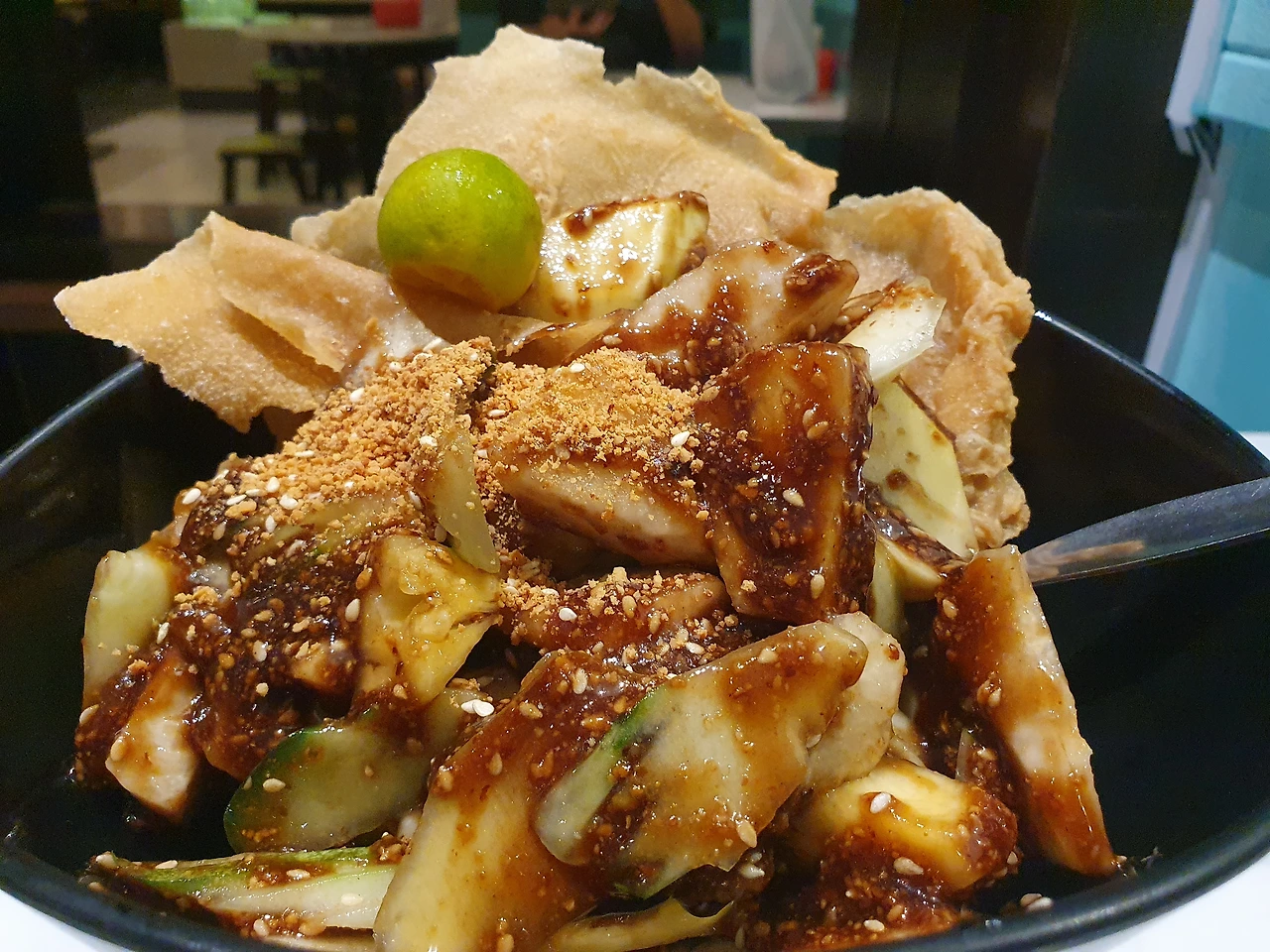 저는 Fruit Rojak을 주문했습니다. 신선한 파인애플, 오이, 사과 조각들이 보기 좋게 담겨 있었고, 그 위에 땅콩 가루와 참깨가 듬뿍 뿌려져 있었습니다. 그리고 새우 페이스트로 만든 검은 소스가 과일에 아낌없이 버무려져 있어 특유의 풍미가 느껴졌습니다.
