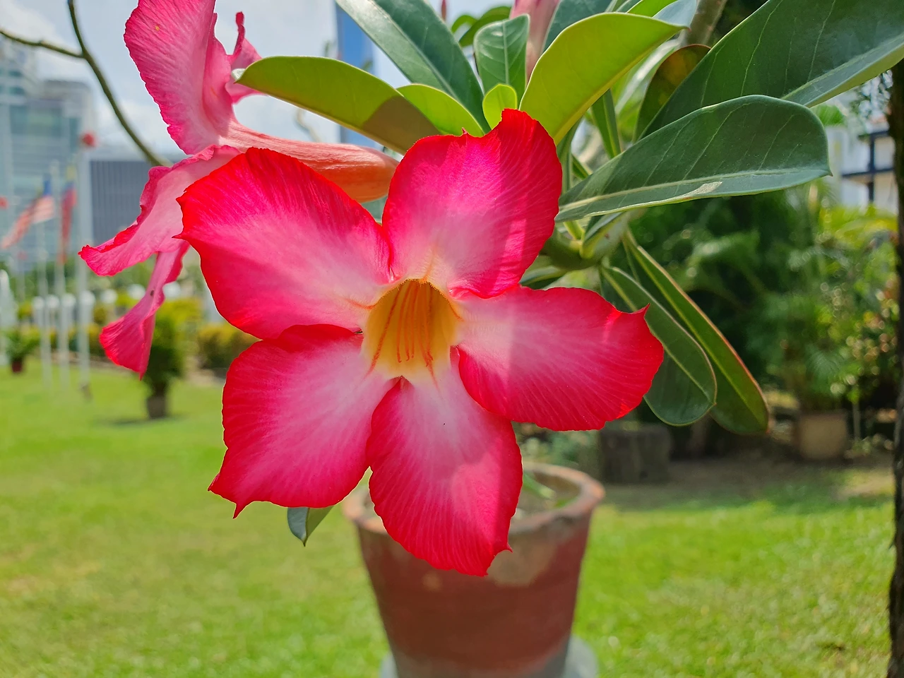 성당 앞에 피어 있는 선명한 빨간 꽃들은 성당을 방문하는 모든 이를 환영하는 듯, 성당 앞을 아름답게 물들이고 있었습니다. 진홍빛 꽃잎들은 햇살을 받아 더욱 빛나고 있었고, 바람에 살랑거릴 때마다 성당 앞을 장식하는 작은 축복처럼 느껴졌습니다.