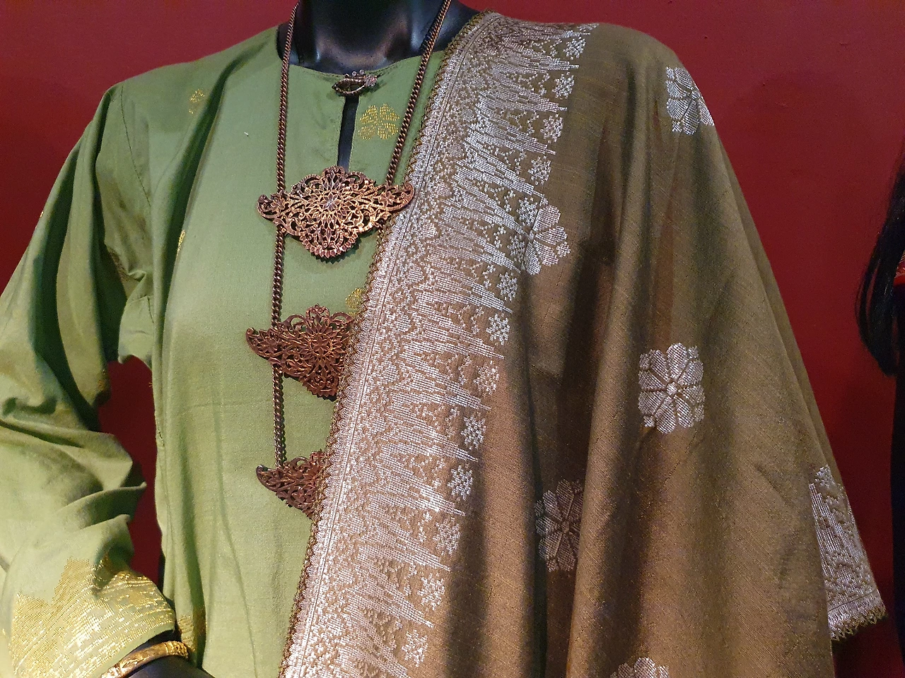 송켓은 금빛과 은빛의 실을 엮어내어 고귀한 빛을 뽐내는 직물로, 과거 왕실에서나 볼 수 있었던 화려함을 담고 있었습니다. 한 올 한 올에 담긴 장인의 손길과 시간의 흔적이 신비롭게 다가왔습니다.