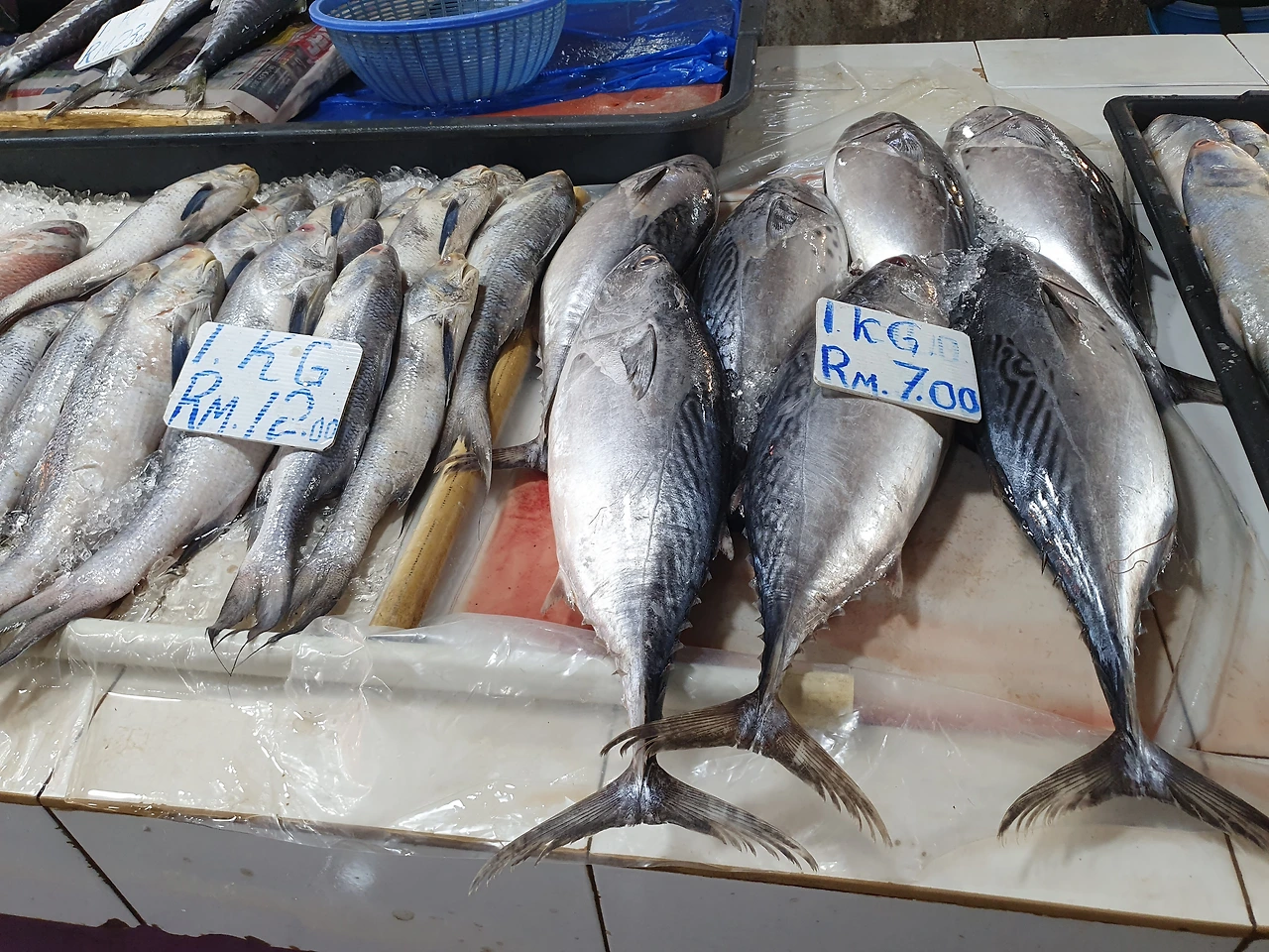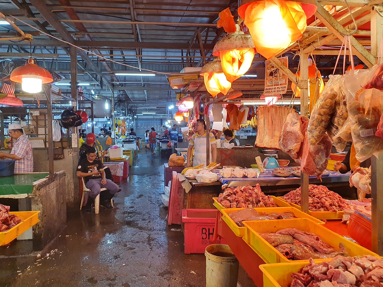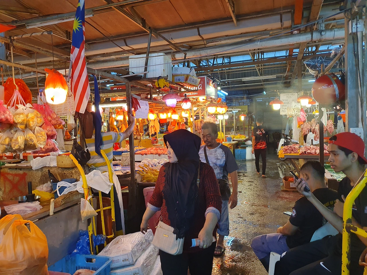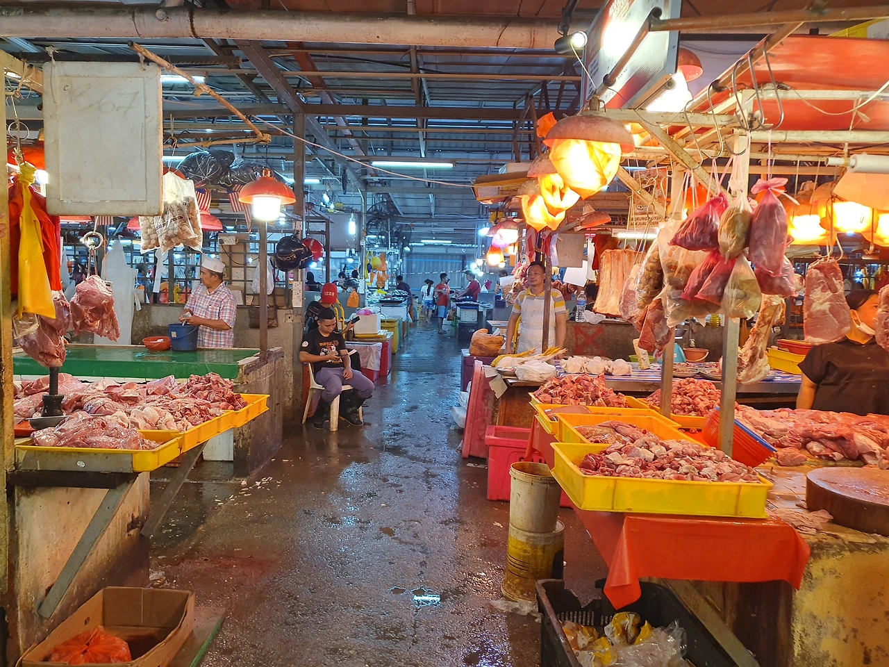 초우킷 시장은 크게 두 구역으로 나뉘어 있었습니다. 우선 습식 시장으로 향해 보았는데, 그곳에는 신선한 해산물과 육류가 풍성하게 진열되어 있었습니다.