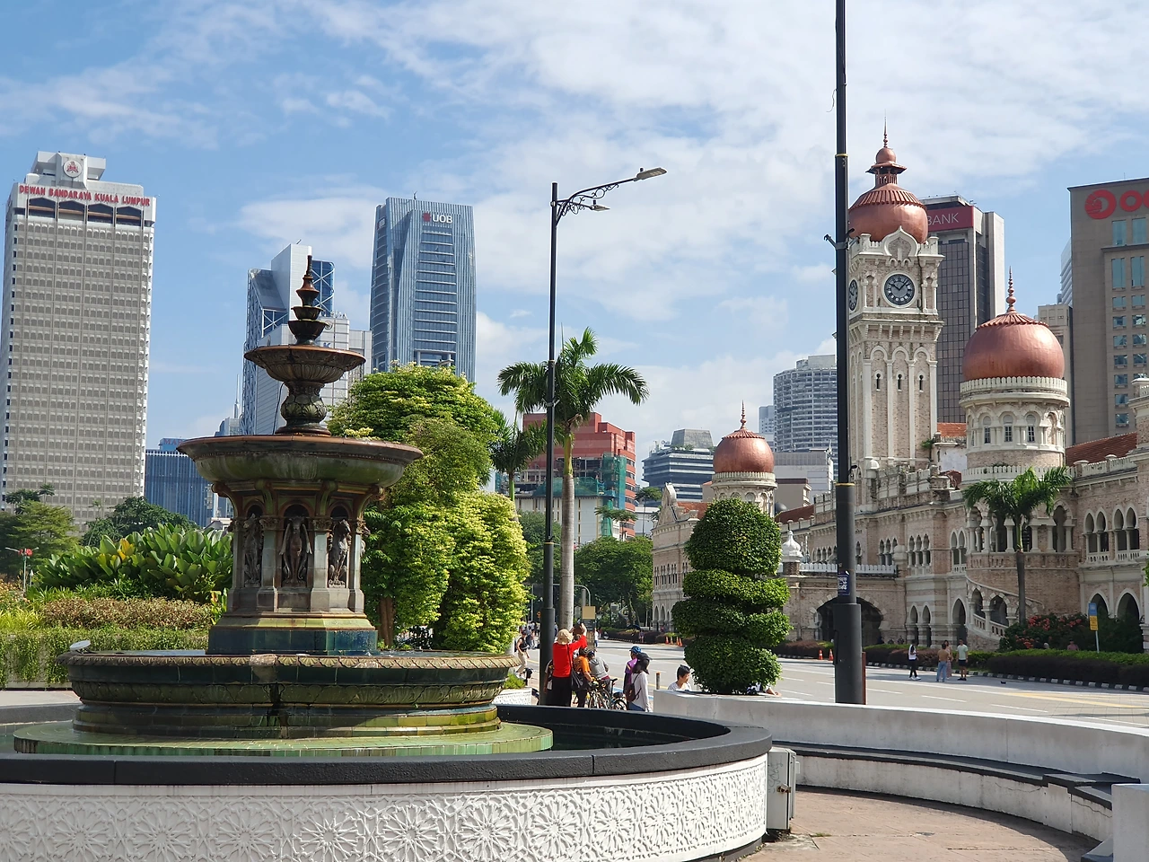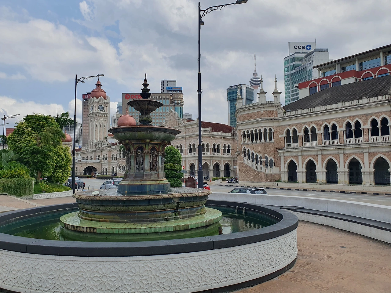 말레이시아가 영국 식민 지배로부터 독립을 선언한 바로 그날, 이곳 메르데카 광장에서 수많은 이들이 모여 감격과 환호로 가득 찬 시간을 보냈다고 합니다. 그날의 함성이 여전히 이 광장 어딘가에 스며있는 듯, 빌딩은 당당하고 고요한 모습으로 자리하고 있었습니다.