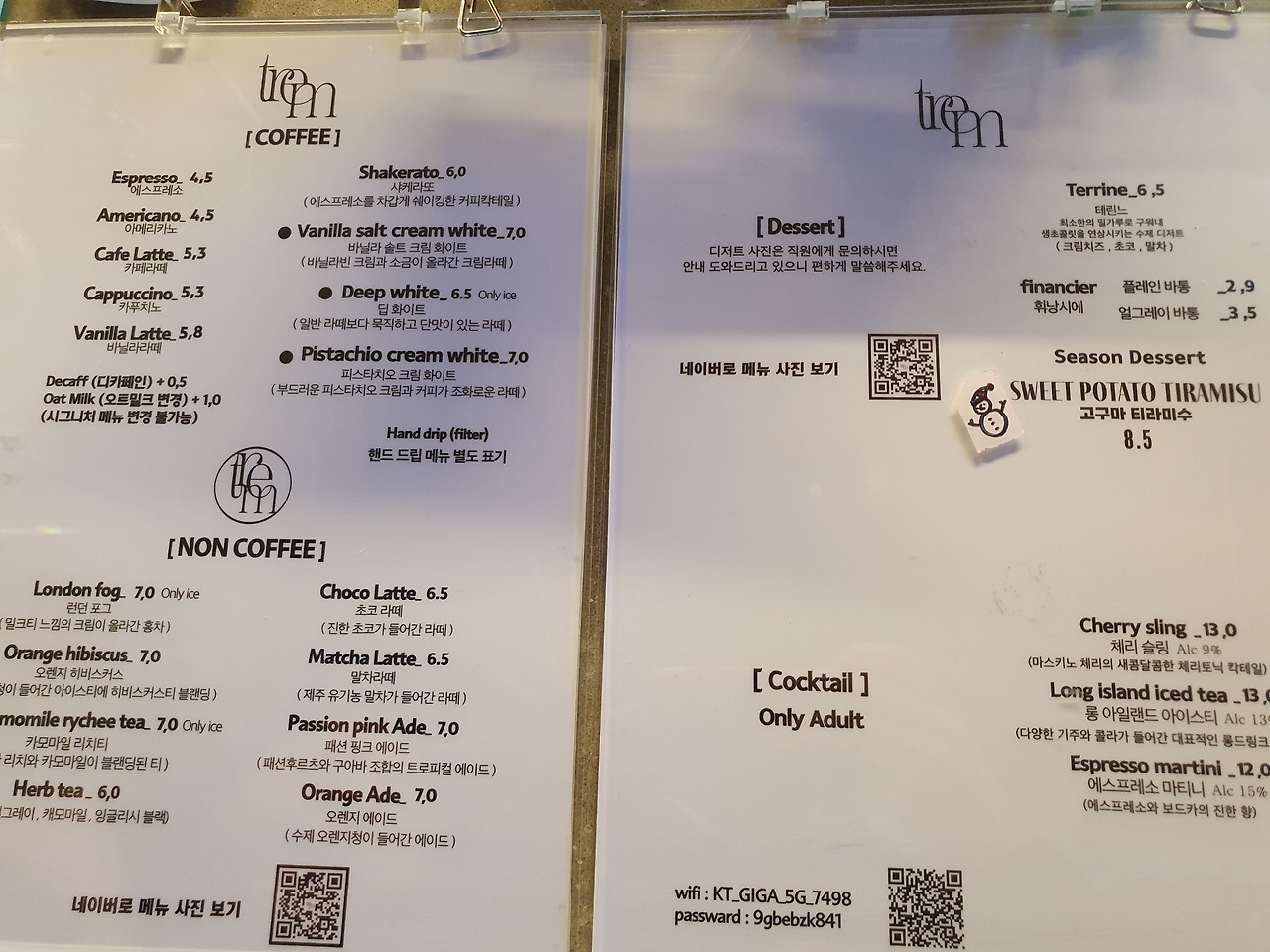 메뉴판!