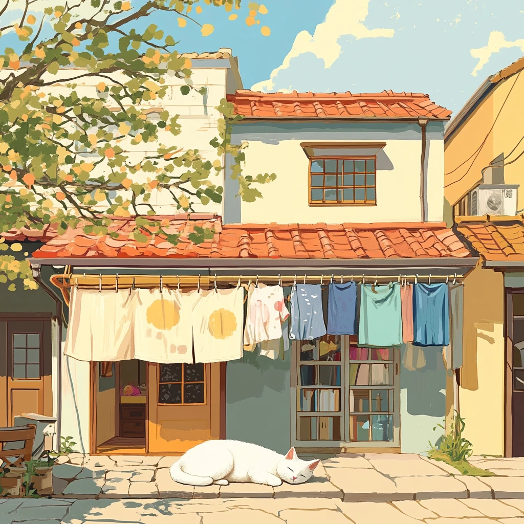 작은 가게 앞에는 고양이가 느릿하게 낮잠을 자고 있었습니다.