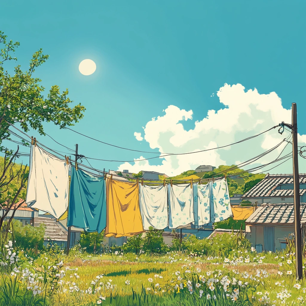 햇볕을 받아 밝고 따스하게 펴진 이불은