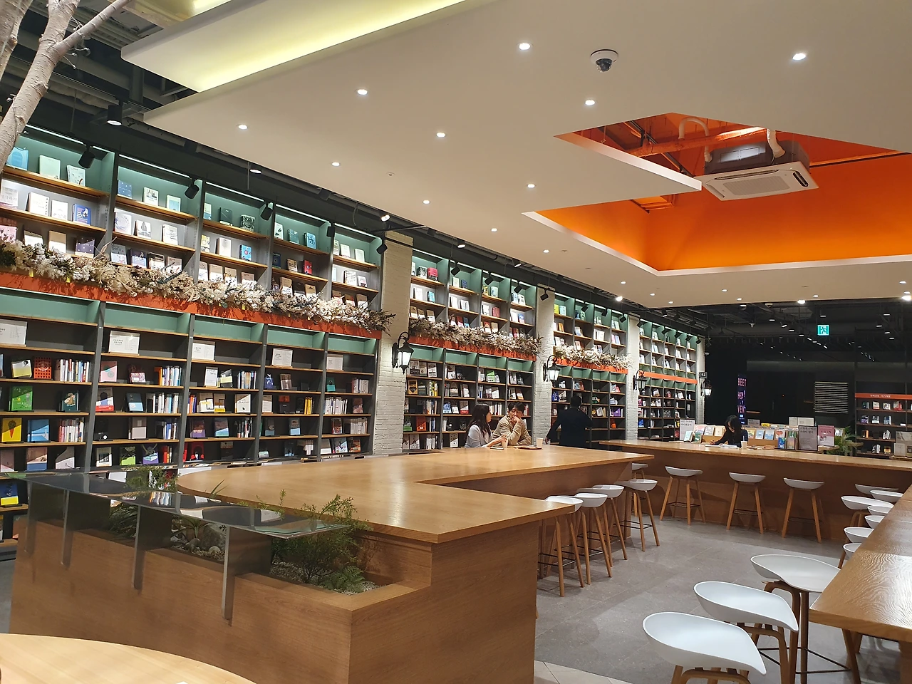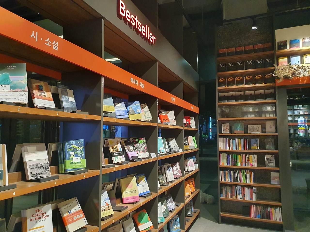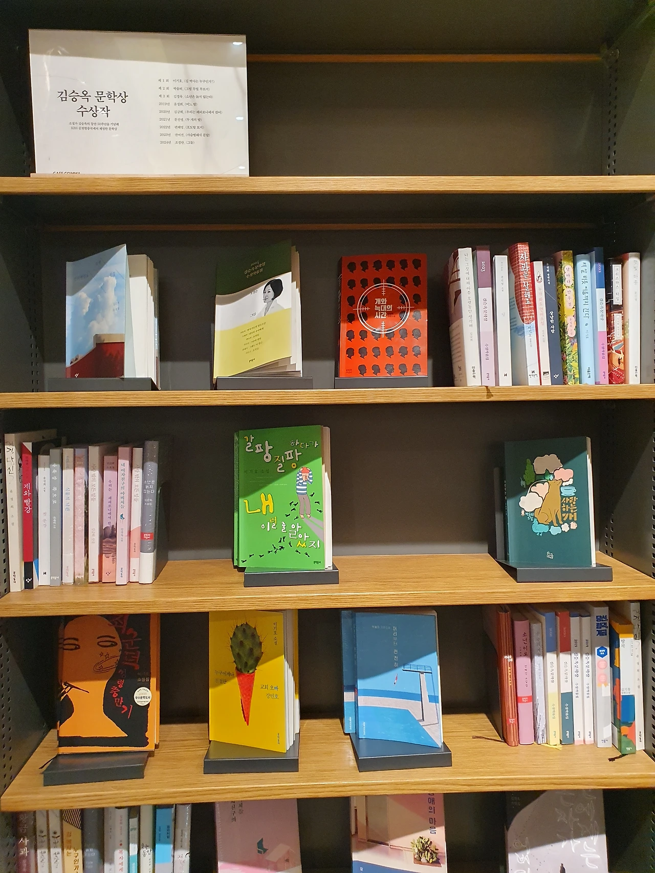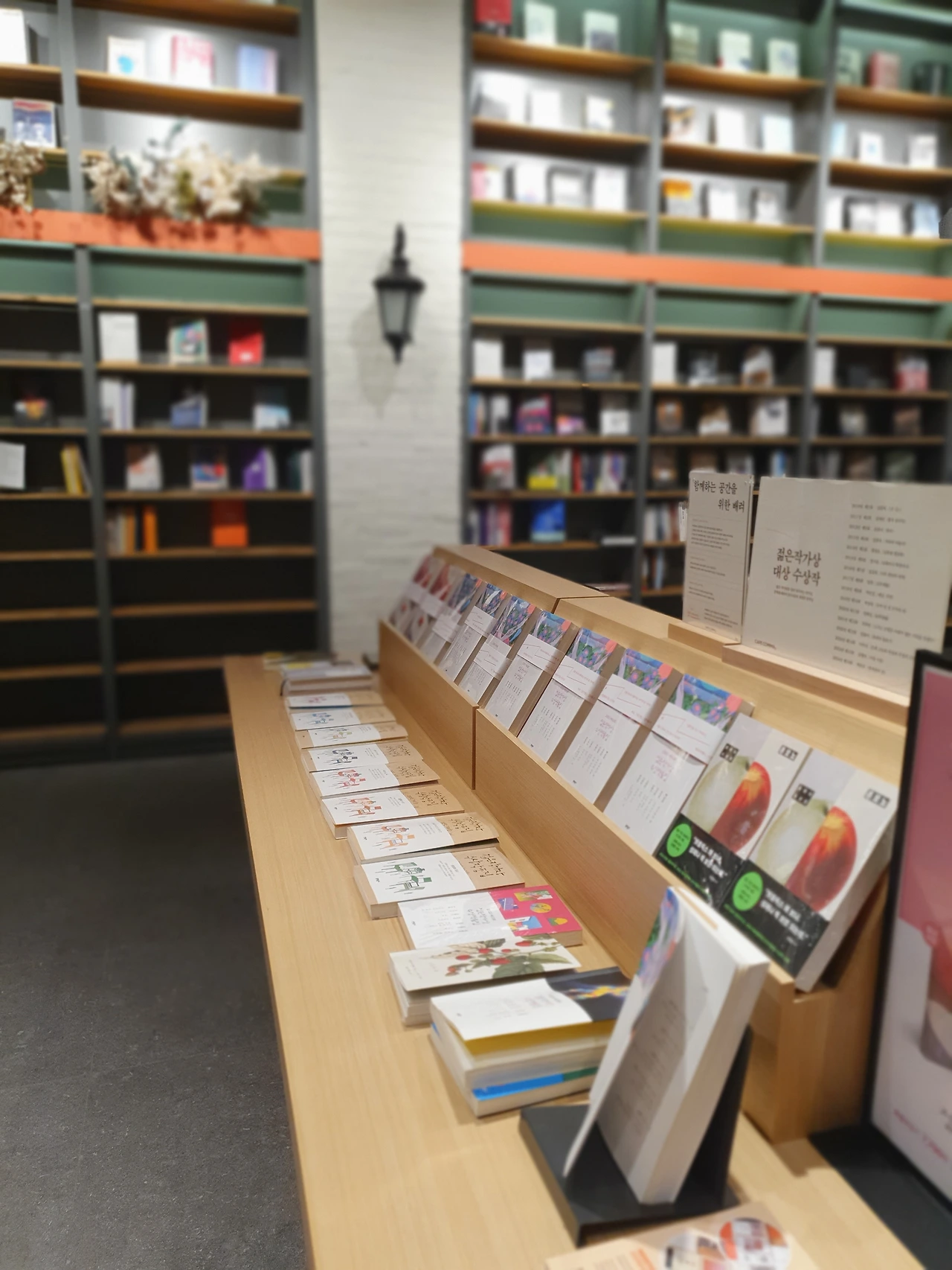 곳곳에 커다란 책장이 참 인상적이었습니다. 한 권 한 권 책을 바라보다가, 오늘은 에세이 한 권 골랐습니다.