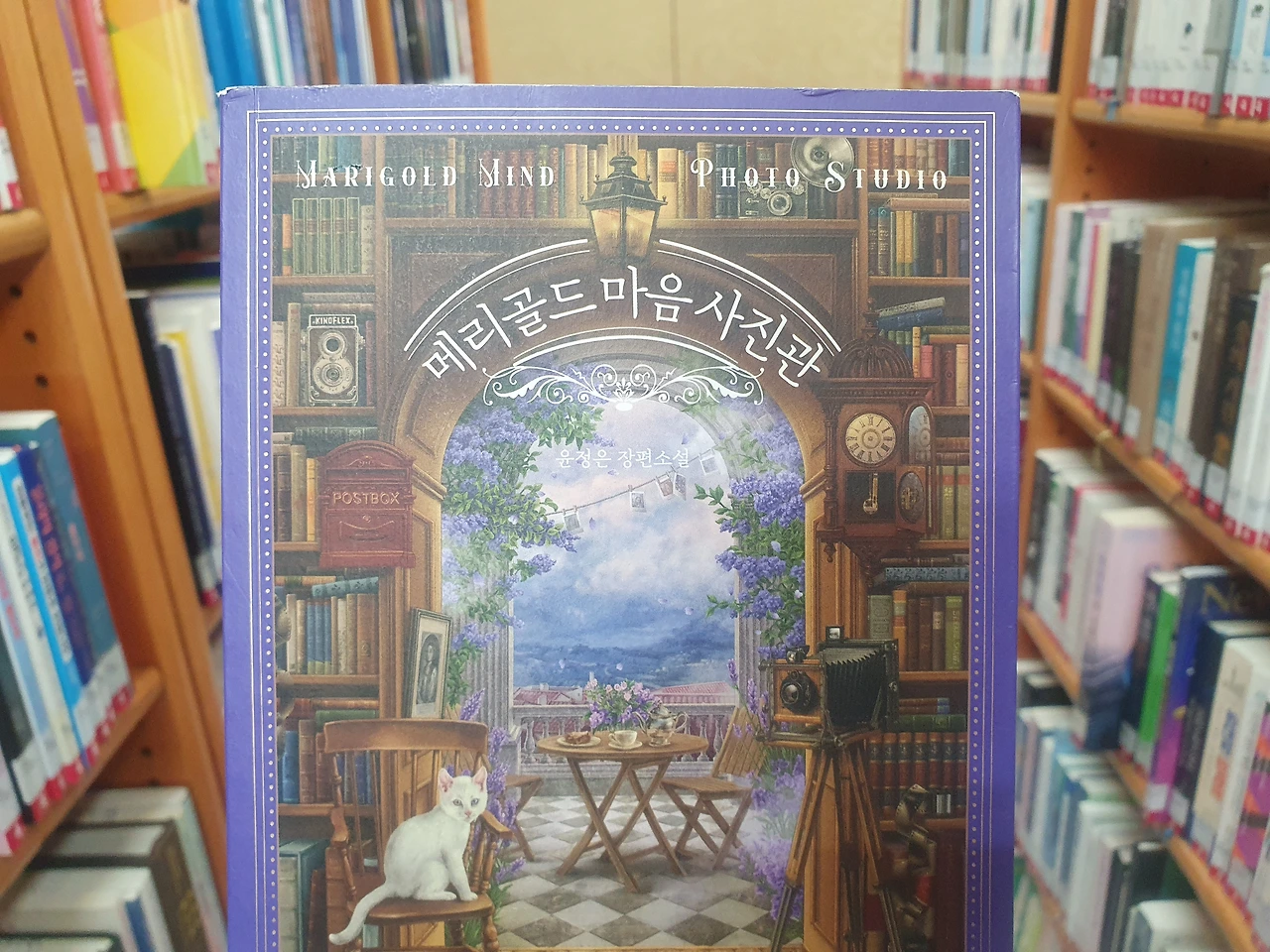 책 속 사진관 앞에도 조용히 메리골드가 피어 있습니다.