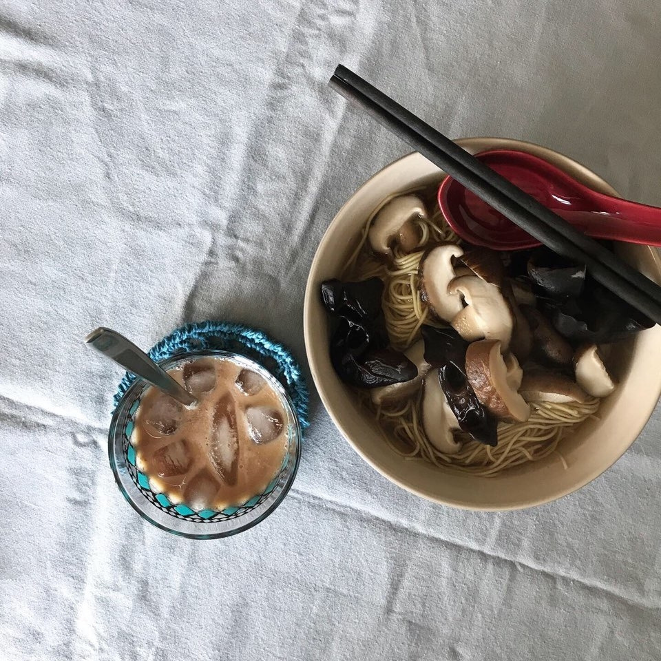 에그 누들은 현지에서 먹던 맛 그대로다! 쫄깃쫄깃 탱글탱글한 식감이 마법을 부린 듯 나도 모르게 그 맛에 빠져 끊지 않고 쭉쭉 들이켰다. 에그 누들은 처음 요리해봐서 혹시라도 그 특유의 식감을 제대로 살리지 못할까 봐 자신이 없었는데 이게 웬걸? 말 그대로 제대로 폭풍 흡입했다. 게다가 버섯의 쫀득쫀득한 맛과 풍미가 더해져 내가 좋아하는 식감이 배가됐다. 정신을 차린 건 면발을 1/3 정도 먹은 뒤였다. 숟가락을 들어 국물을 한 입 먹었다. 현지의 맛보다 건새우의 풍미가 조금 부족했지만 그 부분을 버섯의 향이 채워줘 만족스럽다. 그리고 시원한 밀크티를 한 모금 들이켰다. 여행 중에 간 식당의 풍경이 눈 앞에 그려진다. 면발을 삶는 냄비에서 올라오는 수증기로 뿌옇게 된 식당 주방이 보이고, 성조가 살아있는 중국어가 들리는 듯하고, 나처럼 혼자 온 손님이 내 옆 자리에 합석해 앉아있는 것만 같다. 그땐 허기를 채우기 위해 먹었던 음식이 지금은 추억이 돼 즐거운 경험을 선사한다. 홍콩은 민주화 시위를 하고 있는 터라 코로나19가 해결되어도 가는 건 현실적으로 힘들다. 쉽게 갈 수 없어 그리움이 더 크고 그래서 오늘의 요리가 더 특별하다. 다시 에그 누들을 먹고 밀크티를 마셨다. 아쉬운 마음만큼 이 한 그릇을 남김없이 먹었다.