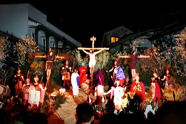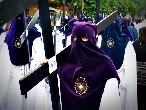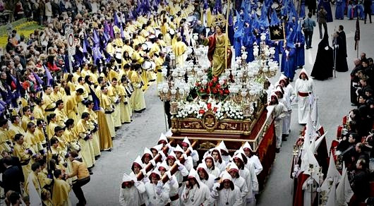 세마나 산타(부활절 전 일주일에서 열흘)에는 스페인 전역에 있는 천주교 신도들이 100여 종류가 넘는 이동식 무대를 들고 밤낮으로 행진한다. 이동식 무대는 예수의 고난, 부활 등 예수에 대한 이야기를 담고 있다. 또한, 못 박힌 예수 조각상을 들거나 십자가를 메고 걸으며 예수의 고통을 체험하거나 눈만 뚫린 고깔 모양의 예복을 입고 악기를 연주하며 행렬하는 신도들도 있다. 흥미로운 사실은 지역마다 행진의 모습이 다양한 것. 세비야에서는 무거운 마리아상을 들고 구시가지의 좁은 길을 행렬하고, 카르타헤나에서는 수천 명의 군중들이 살베 마리아를 합창한다. 쿠엥카에서는 종교 음악 콘서트를 열기도 하며 알바세테에서는 2만 개의 북을 두드린다. 행진의 규모는 천차만별이며 최대 2천 명이 넘는 신도들이 이 행사에 참여한다. 일부 신도들은 예수의 모습을 그린카드나 사탕을 나눠주기도 하며 묵음 행진 시, 구경하는 사람들이 예수를 위한 노래를 불러주기도 한다.