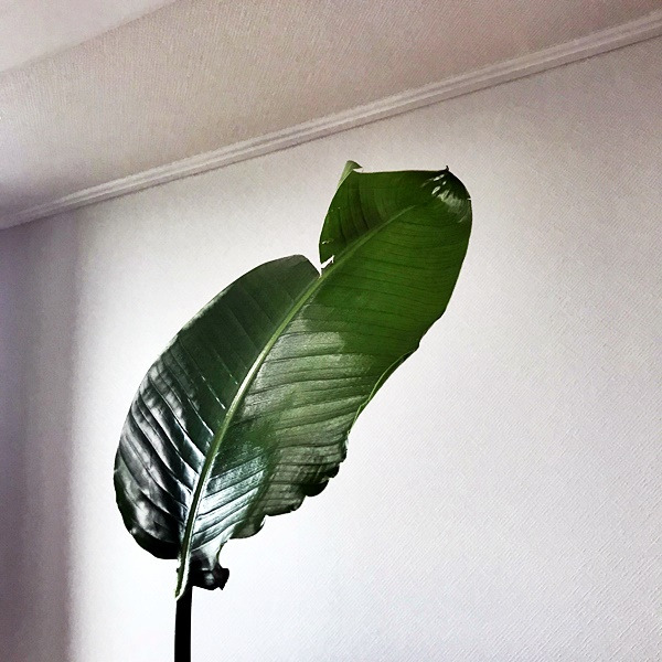 극락조에 새 잎이 나기를 기다리던 어느 날! 줄기 틈에 자그마한 새 잎이 빼꼼 고개를 들며 자신의 존재를 알렸다. 다 자란 극락조 잎은 넓적하지만 이제 막 나오기 시작한 잎은 고깔처럼 둘둘 말려있다. 줄기의 키가 커지고 둘둘 말린 잎은 점점 느슨하게 풀리면서 특유의 넓적한 형태로 성장한다. 이렇게 되기까지 우리 집 극락조는 4주 정도 걸린다. 그런데 이번에 난 새 잎은 속도가 더딘 듯했다. 잎도 훨씬 빡빡하게 말렸다. 4주가 지나도 잎이 완전히 펼쳐지지 않았다. 그동안 새 잎 2개가 나는 것을 지켜봤다는 얄팍한 경험치에 기대어 (극락조는 원치 않았을) 도움의 손길을 뻗었다. 말려진 잎을 직접 펼친 것이다. 손이 닿자마자 ‘스윽’하면서 잎이 찢어졌다. ‘아차!’ 싶었다. 바로 후회했다. ‘스스로 모양새를 갖출 때까지 기다려야 했는데.’ 이미 저지른 일이니 앞으로 같은 실수를 하지 않겠다고, 극락조의 속도를 존중하자고 다짐했다. 그로부터 3주 후, 가장 키가 큰 줄기에 모양새가 가장 예쁜 새 잎이 났다. 잎은 찢어진 채로 말이다. (사진을 보면 잎의 1/3 지점이 찢어져서 말려 올라간 것을 알 수 있다.) 볼 때마다 미안하다.