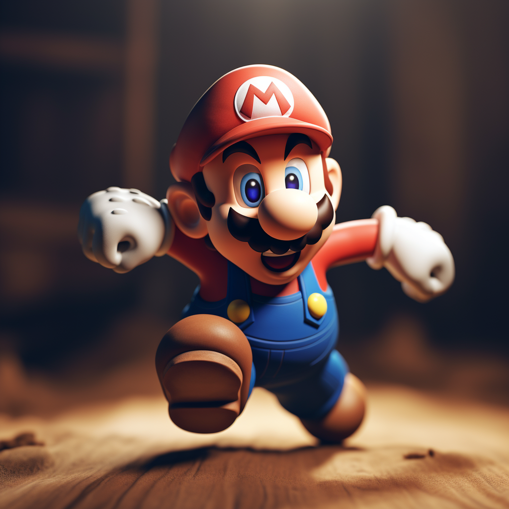 두 그림 다 midjourney를 이용해서 만든 작품이고, 둘의 마리오의 표정이라던지 자세, 고양이의 시선을 맞추기 위해서 여러 번 같은 묘사로 출력했다. 수십 개의 고양이와 슈퍼마리오 그림 중에서 선택된 것들이다. 바닥의 질감도 비슷하고 빛의 구도도 잘 맞아서 이건 된다! 싶었다.