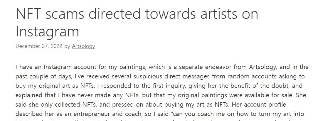 인스타그램에서 nft를 사고 싶다는 연락이 사기였다는 글