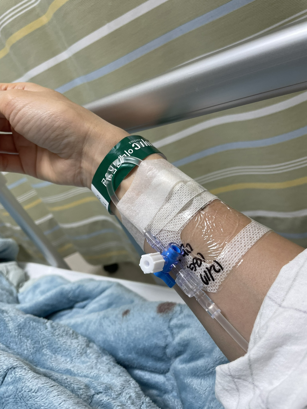 몇 시간 뒤면 4박 5일 동안의 입원생활을 마치고 퇴원하게 된다. 이왕 이렇게 새벽에 깨어버린 참에 좀 걸어볼까? 조기 보행이 수술 후 회복애 도움이 된다 하기도 하고, 앞으로 얼마간은 구경하기 어려울 종합병원의 새벽풍경도 궁금해서 주섬주섬 병원 산책할 준비를 해본다. 한 겨울이니 실내라 해도 선뜩한 한기가 돌테니 추위를 달래줄 도톰한 수면양말을 신고 두터운 후드티를 숄처럼 환자복 위에 두른다. 텀블러에 뜨거운 차도 가득 담았다. 귀에 에어팟도 장착! 5일 내내 달고 다니던 무시무시한 굵기의 링거 바늘도 방금 뺐으니 한결 가뿐하게 산책할 수 있을 것 같다.