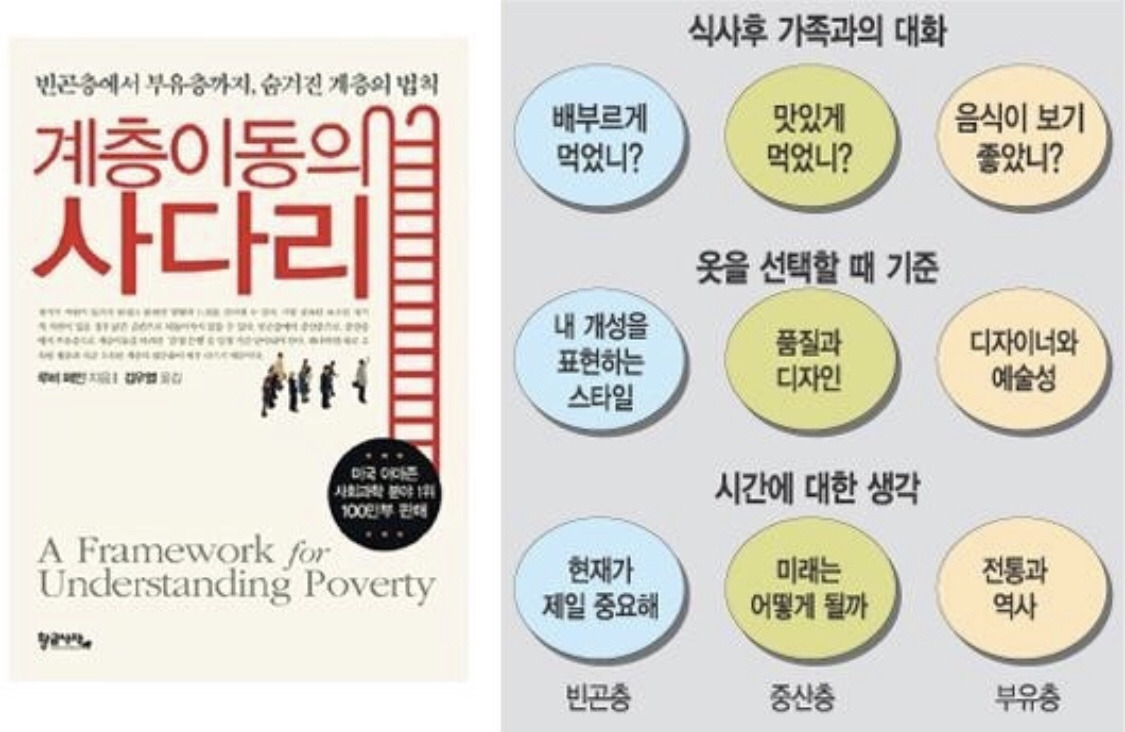 그렇다면 과연 부유층, 중산층, 빈곤층을 구분하는 기준은 무엇일까? 저명한 교육학자인 루비 페인의 『계층이동의 사다리』에는 흥미로운 계층의 불문율이 실려있다.
