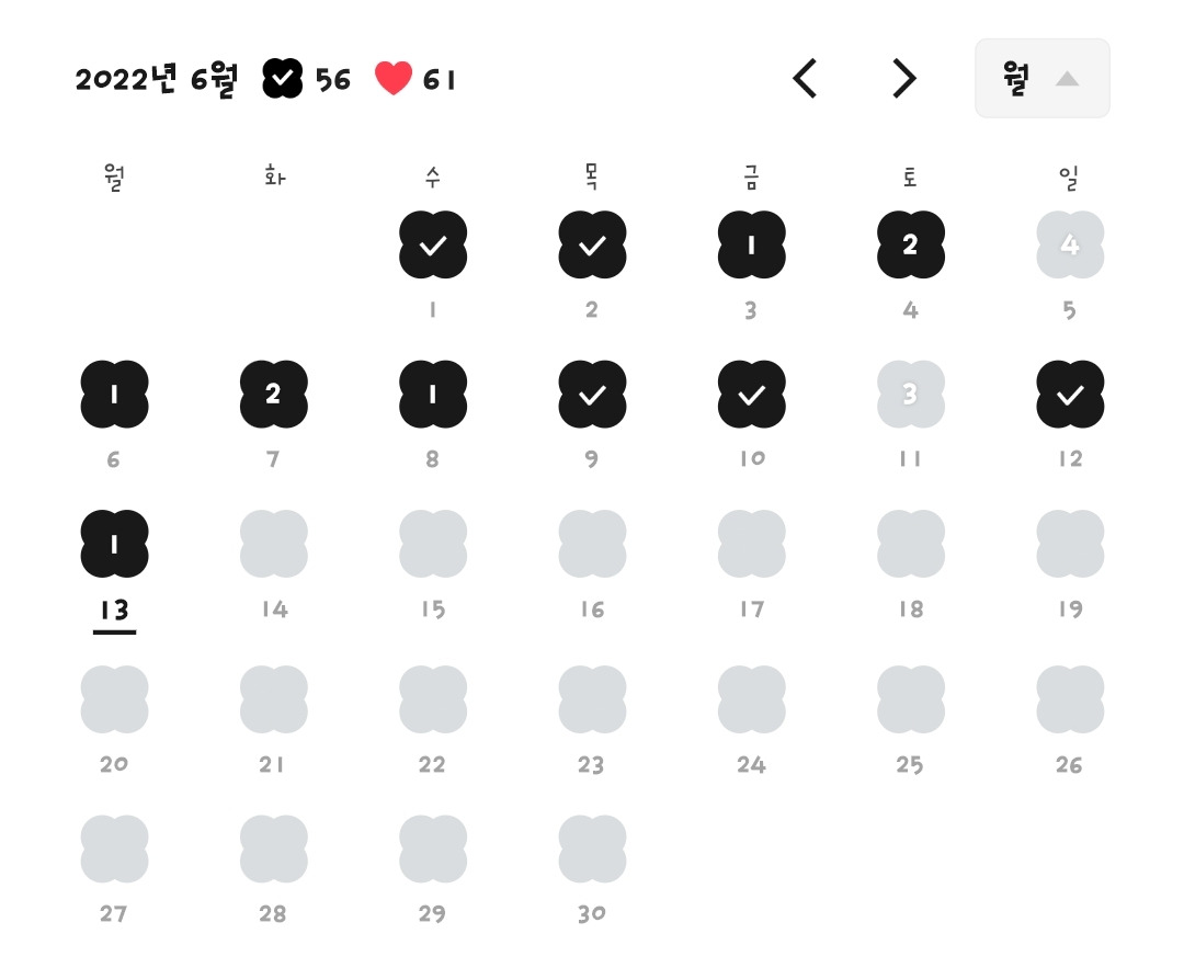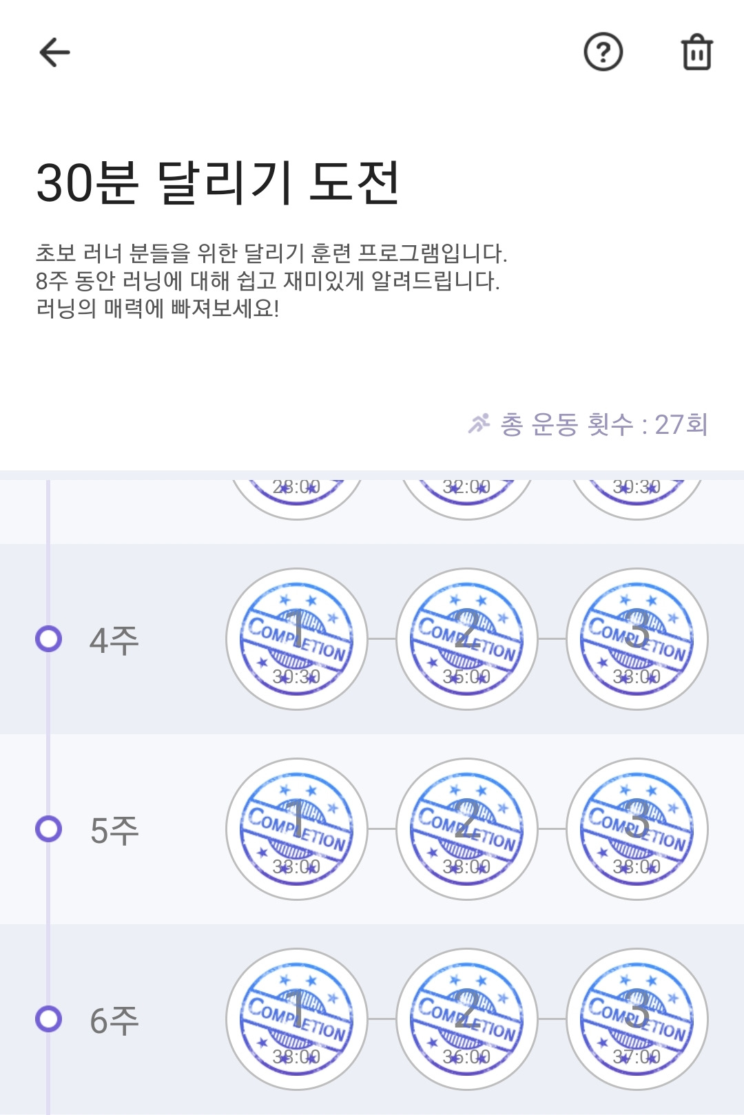 쉬는 동안 무슨 일이든 꾸준히 하는 습관을 들이기로 했다. 이건 런데이라는 어플인데, 일주일에 3번씩 8주차 달리기 가이드를 제공하고 있다. 6주차까지 완료하고 7주차에서 코로나19에 걸리는 바람에, 몇 주를 그대로 쉬어버렸다. 그러다 최근에 2주차부터 다시 뛰고 있다. 우선 운동하는 습관을 들이는 중이다. 달리기와 인터벌 워킹, 산책, 홈트레이닝. 강도는 낮지만 최대한 꾸준히 하려고 한다. 별건 아니지만 도장을 찍을때마다 은근 성취감이 있다!