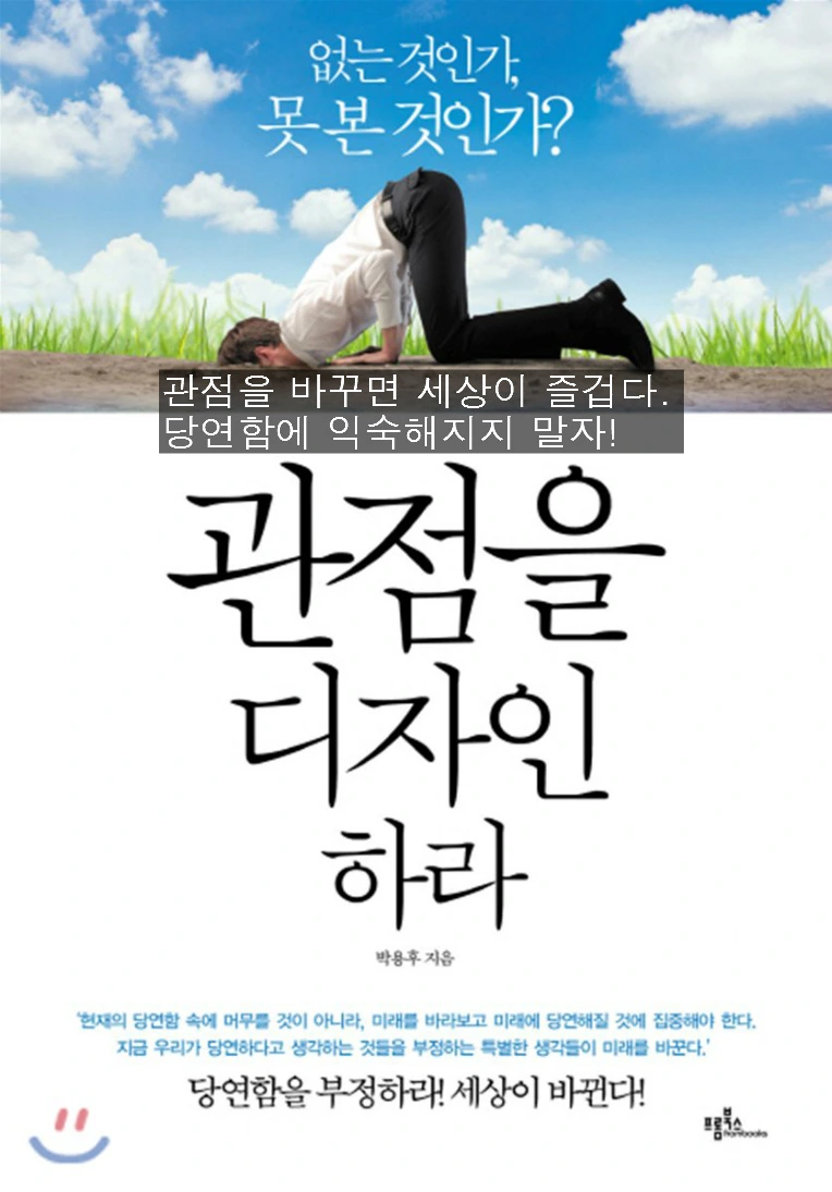 누군가 나에게 가장 좋은 책이 무엇이냐고 물어본다면 나는 단언컨대 스스로 생각이나 질문을 할 수 있도록 해주는 책이라고 답할 것이다. 박용후 관점 디자이너의 저서 <관점을 디자인하라>는 나에게 그런 책으로 다가왔다. 박용후 님의 글을 읽는 내내 그분의 철학과 관점, 질문들에 대해 고민하고 '나'에 대해 생각할 수 있는 시간을 보낼 수 있었다. 단어의 선택 하나하나, 하나의 단어라도 저자만의 정의로 풀어서 이야기해주는 부분에서 마저 그 디테일함을 감탄을 금하지 못했다.