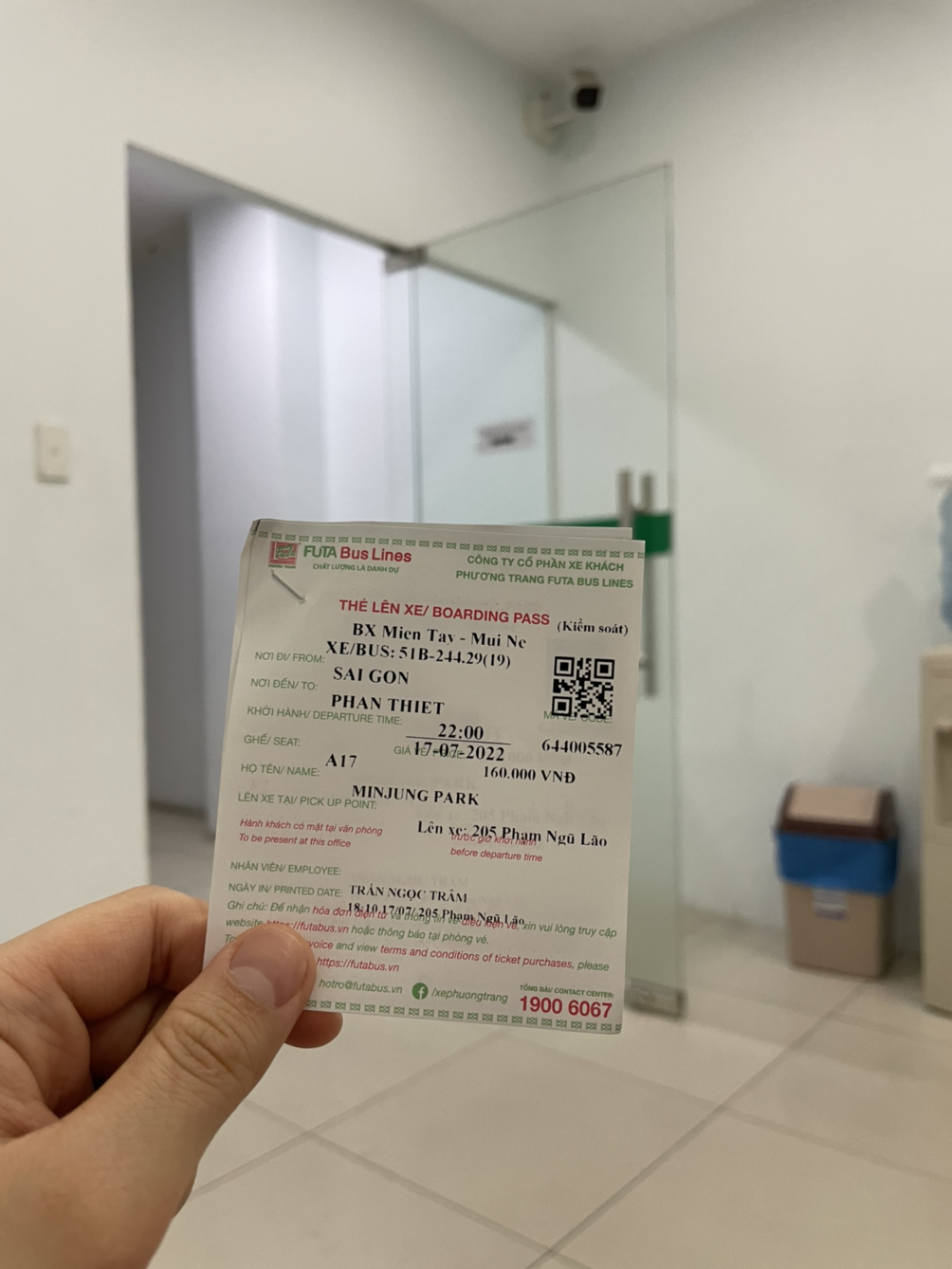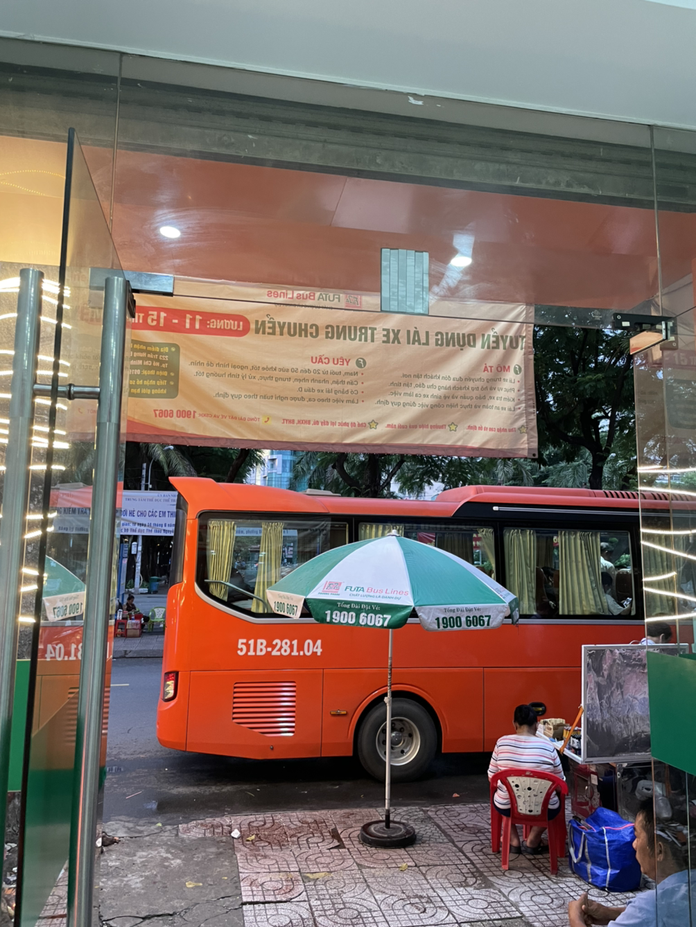 걷고 걷고 걷다보면 풍짱버스 사무실에 도착할 수 있었다. 베낭에 정말 최소 필요 물품만 들고 왔는데도 무거웠다. 풍짱버스는 이렇게 주황색깔의 큰 버스이다. 여기는 풍짱버스 부이비엔거리 근처 사무실이다. 시내에 내려 제일 먼저 한 것은 무이네로 가는 버스 티켓을 구매한 것이다. 돈이 있든 없든 교통편만 해결이 된다면 이동할 수 있고 어디든 여행할 수 있다고 생각했기에 가장 먼저 버스 티켓을 확보했다.