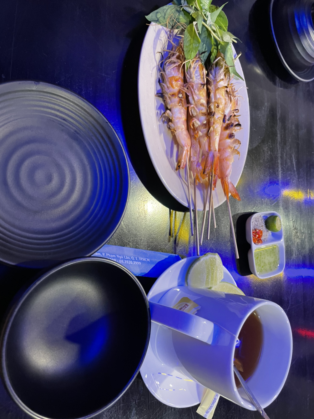 해산물이 먹고 싶었는데 교정기 때문에 딱딱한 것은 못 시키니 남는 선택지가 새우뿐이였다. 새우구이인데 저 풀은 왜 준지 모르겠다. 새우껍질을 까고 소스에 찍어서 저 풀과 함께 먹으라는 뜻 같은데 손이 너무 많이 가서 그냥 새우 머리만 떼고 소스만 찍어서 먹었다. aka 귀찮은거 딱 질색인 스타일,,,