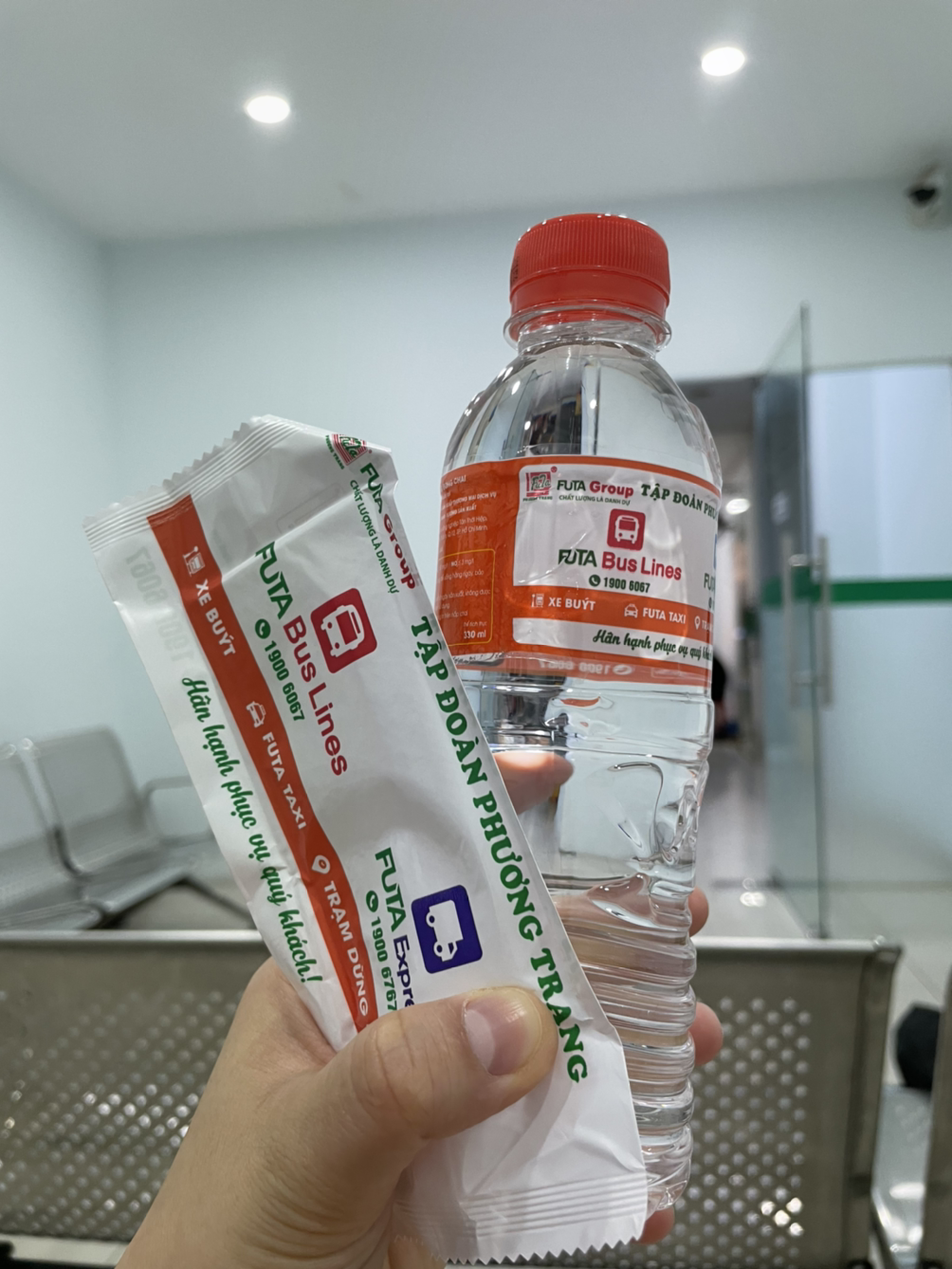 밥을 다 먹고 이제 다시 풍짱버스를 타러 왔다. 출발 시간 15분 전에 도착했는데도 불구하고 아직 전에 출발해야했던 버스도 출발을 안했더라. 고로 나는 30분 가량을 더 기다려야했다. 언제 오냐고 내가 자꾸 물으니 귀찮았는지 대합실에 가서 앉아서 기다리라고 하며 물과 물티슈를 주었다. 사실 두번밖에 안물어봤는데 ㅠㅠ