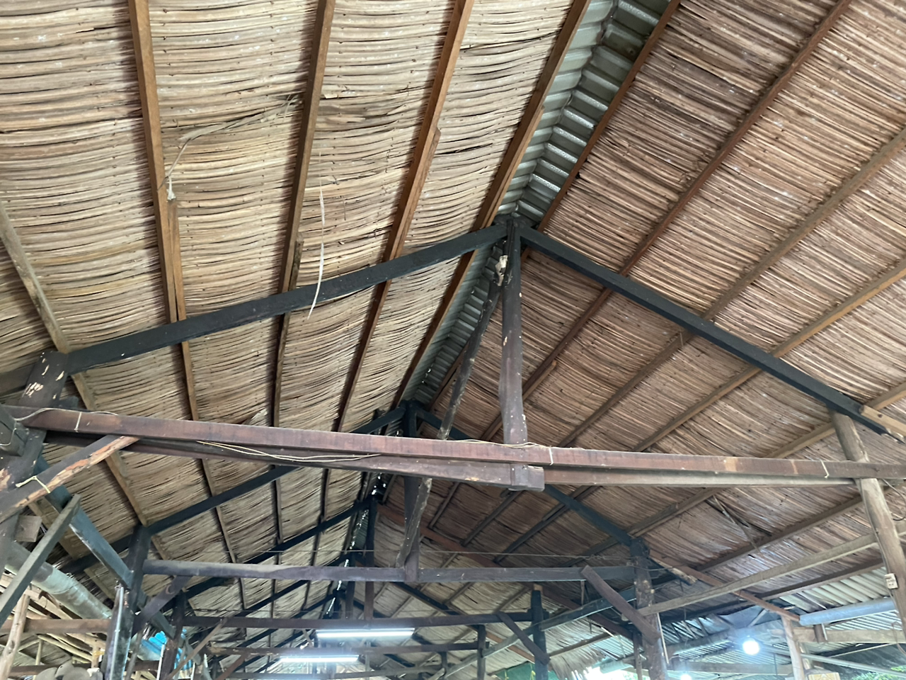 코코넛 잎으로 이렇게 지붕을 만들었다. 주기적으로 다시 엮어 지붕을 덮는다고 한다.