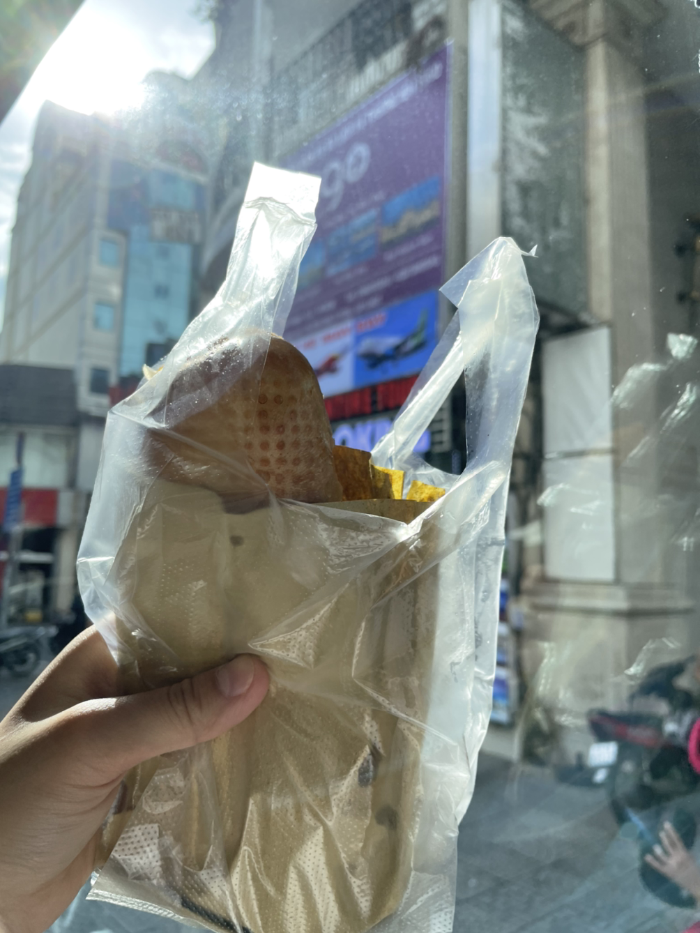 여기는 메콩강 투어 사무실이다. 사무실 앞에 반미를 파는 할머니가 계셨다. 맛있어 보이길래, 계란반미를 사먹었다. 음료랑 같이 해서 5천원 미만으로 줬던 것으로 기억한다. 근데 계란 반미도 정말 정말 맛있었다. 이번 소스는 정말 이삭토스트 소스 맛이였다. 돼지고기랑 계란 반미 먹었는데 원픽은 계란!