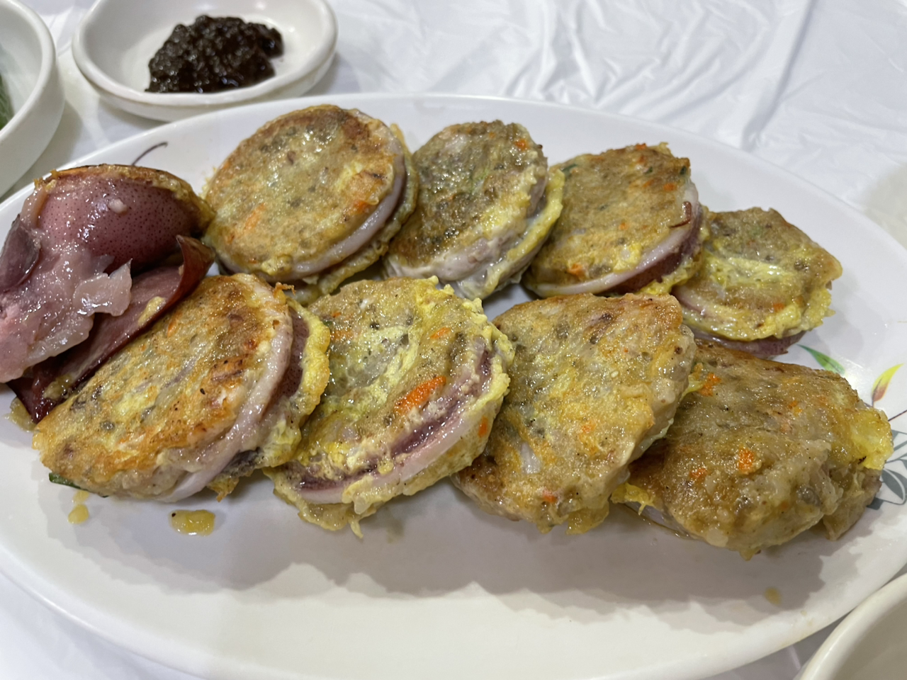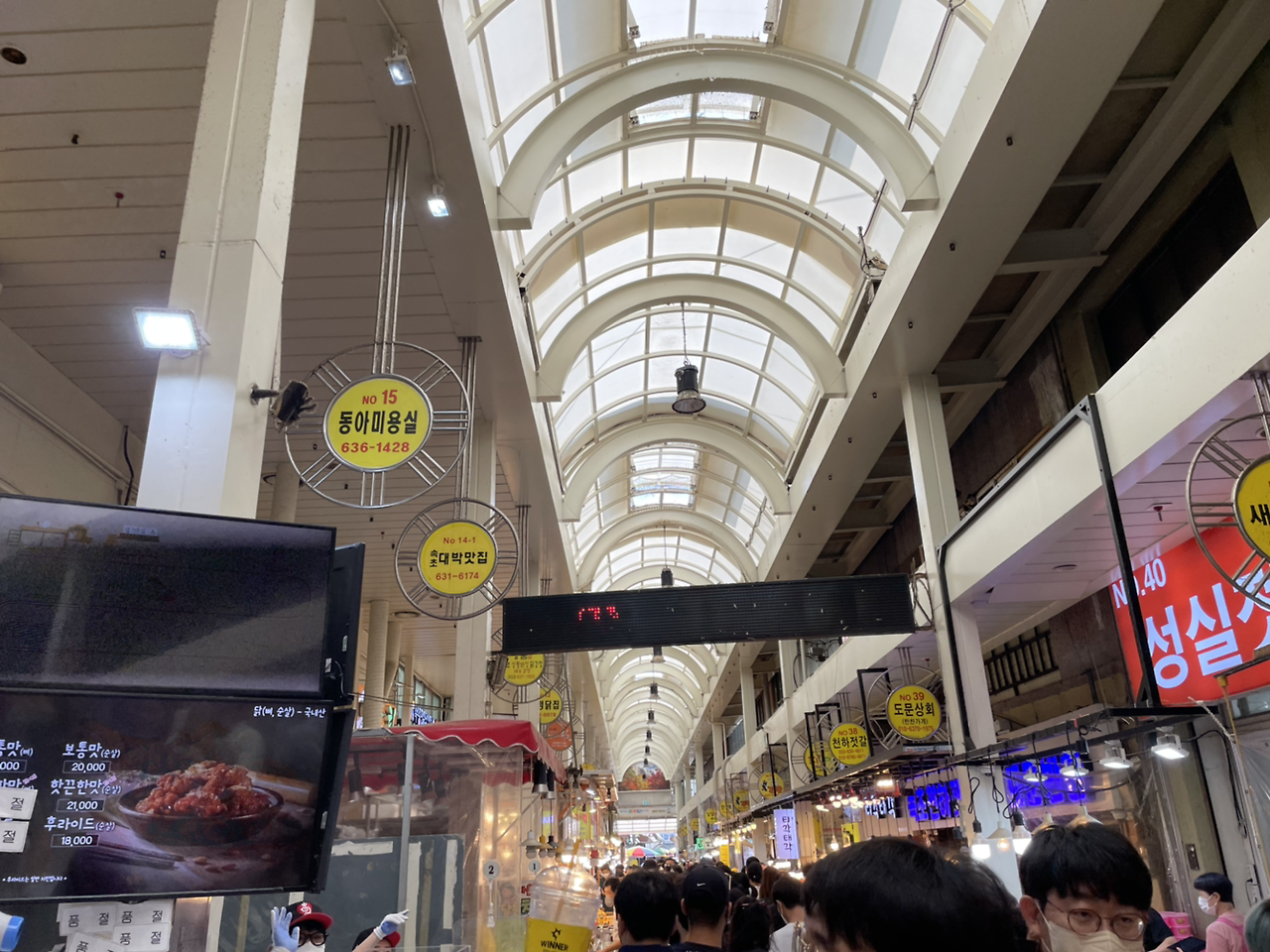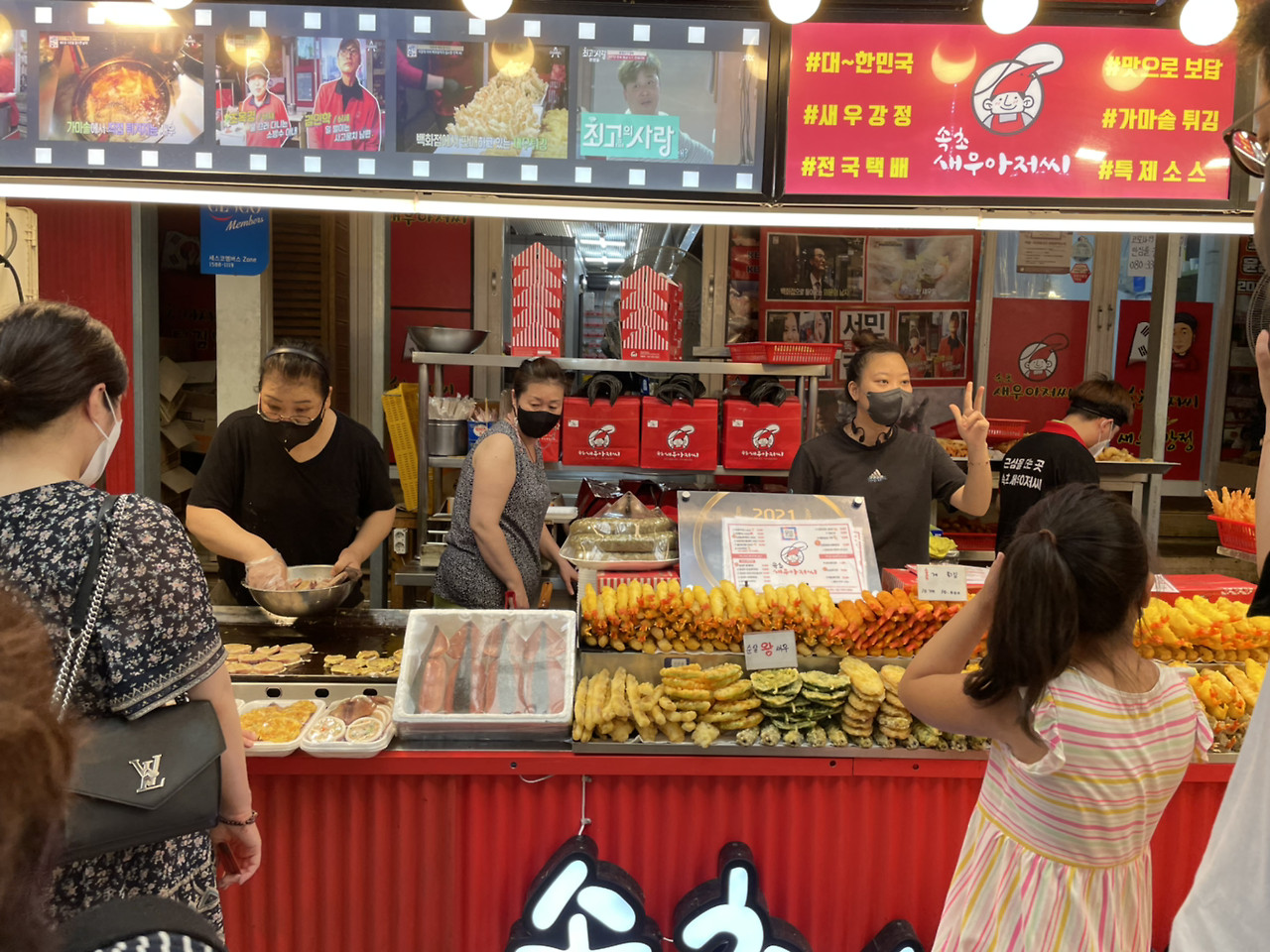 나는 입구 쪽에 있는 곳에서 사먹었는데, 대게살튀김4개랑 통새우튀김4개 해서 8개에 1만원에 사먹었다. 튀김은 맛있었다. 머리까지 같이 튀겨주는데 파는 입장에서 보면 참 쉬운 음식이라는 생각이 들었다. 생새우 사다가 닦고 밀가루 묻혀서 튀기면 되니까말이다. 먹는 입장에서는 새우 머리를 안먹는 또는 못먹는 사람이라면 다소 귀찮은 음식이다.