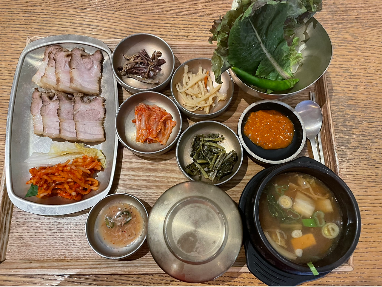 다음날에는 기필코 무슨일이 있어도 비행기를 타겠노라 마음을 먹고 저녁 7시 50분 비행기였는데 7시간 먼저 공항에 도착했다. 도착해서 코로나 신속항원검사 즉 RAT 검사도 받고 마지막 한국음식이라고 믿고 비싸게 보쌈 정식도 먹었다.